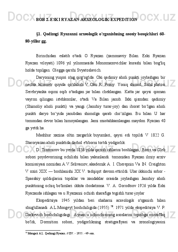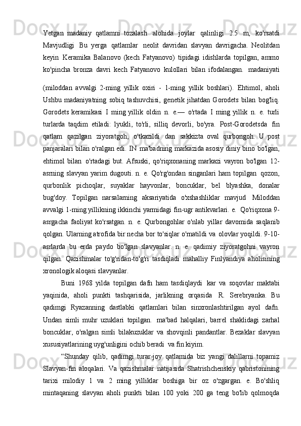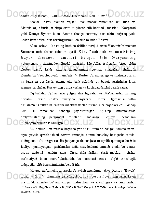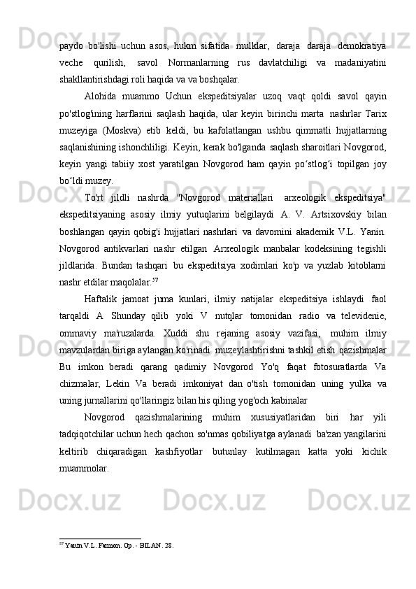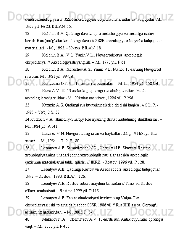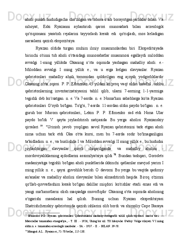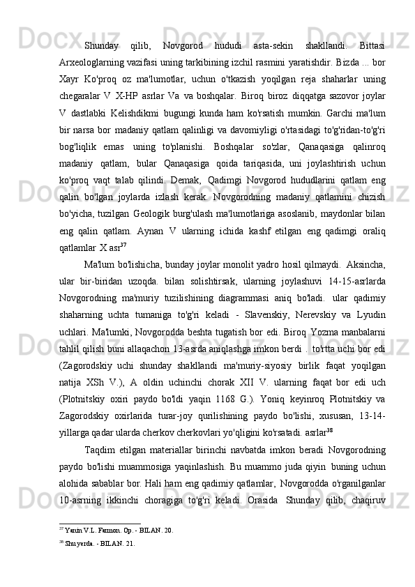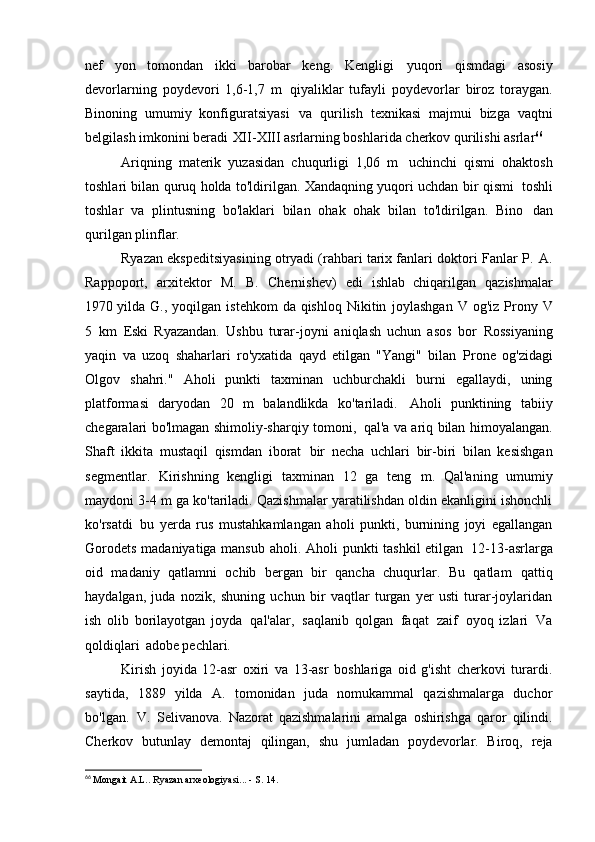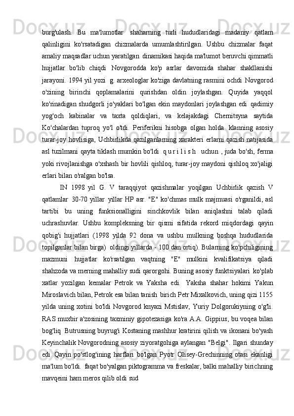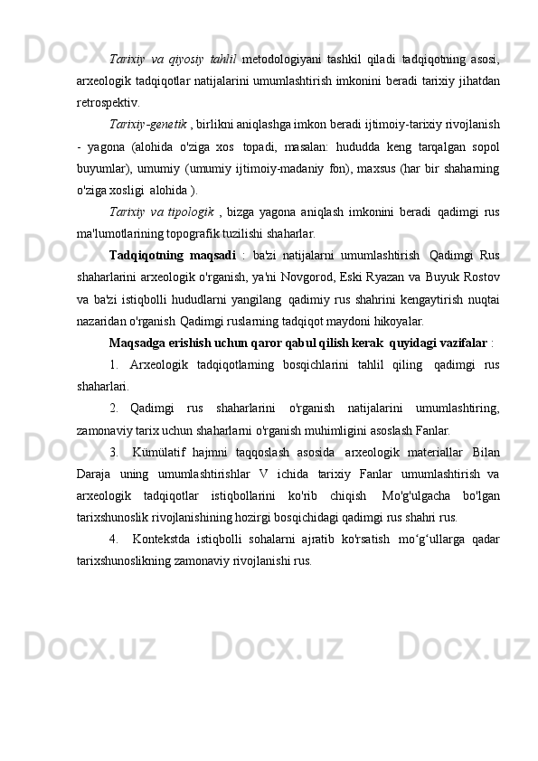 Qadimgi rus arxeologiyasi shaharlar: natijalar va istiqbollar