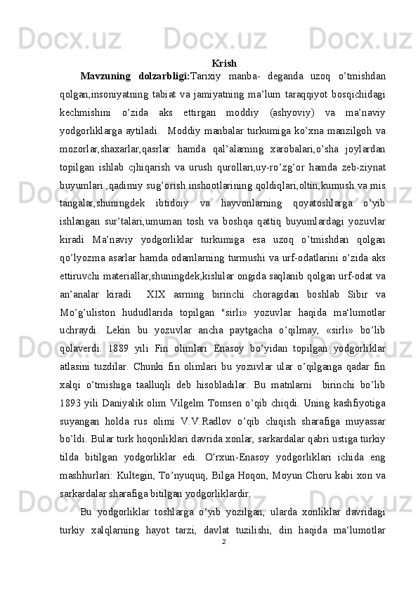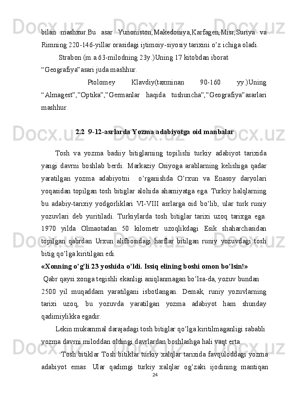 Qadimgi turkiy bitiglar tarixiy adabiy manbalar sifatida