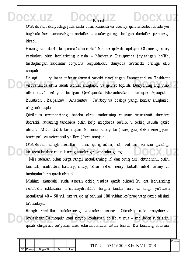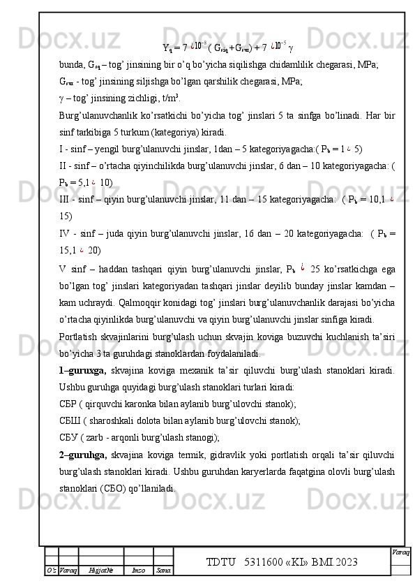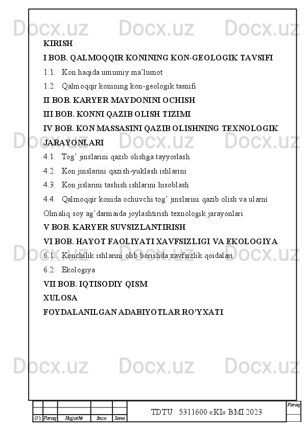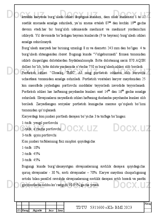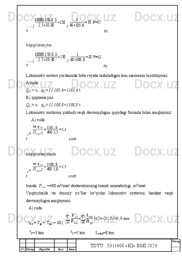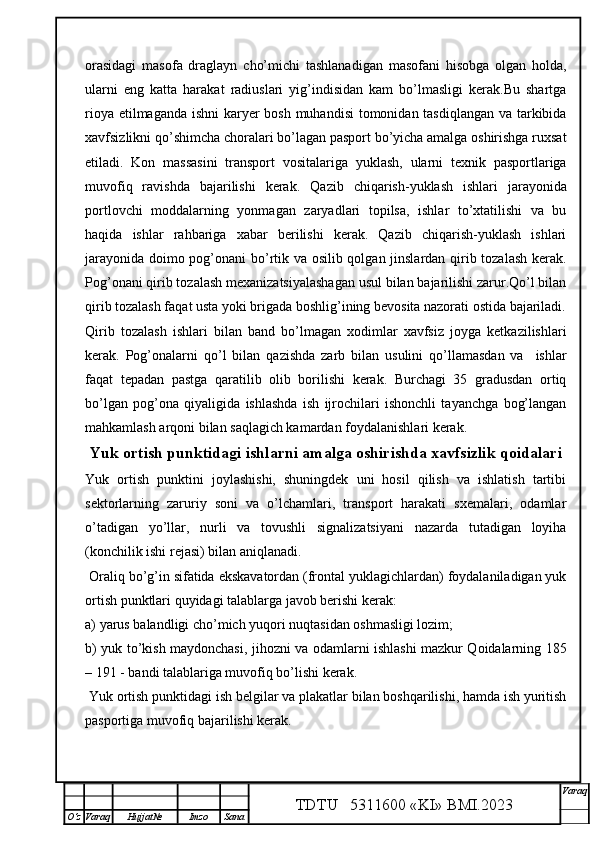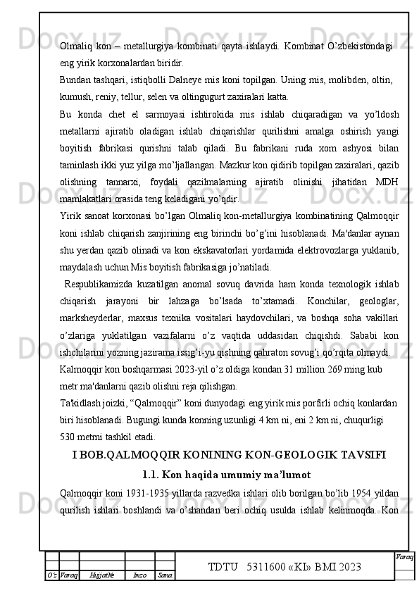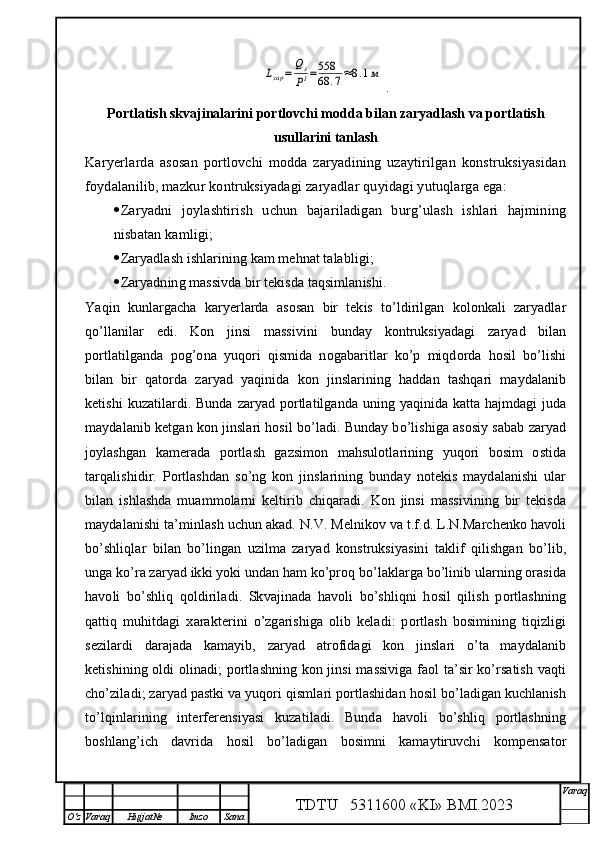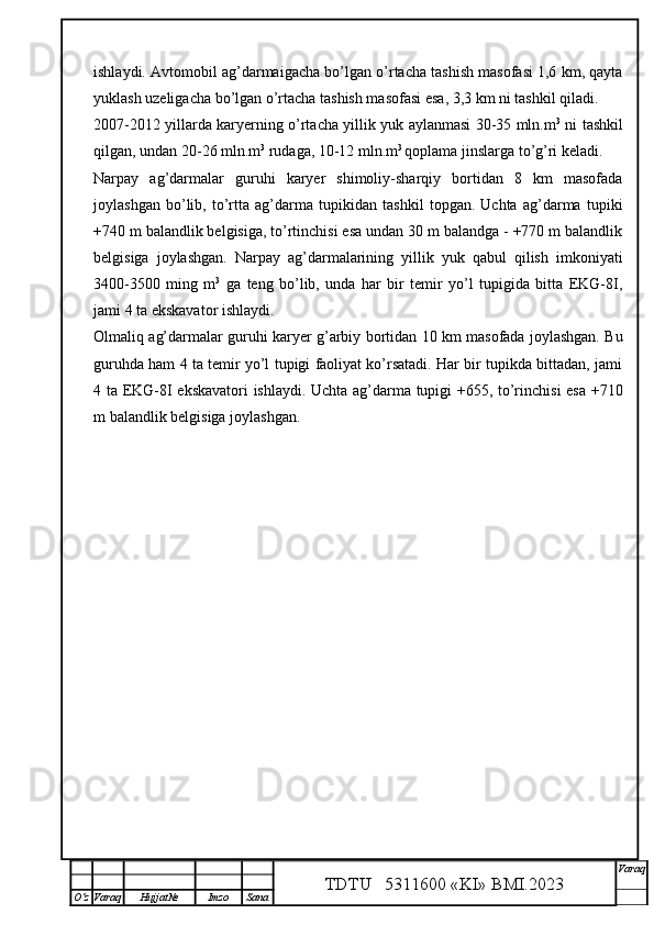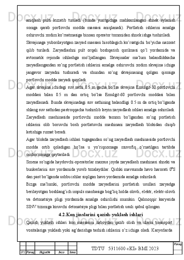 Qalmoqqir konida tog’ jinslarini yuklashni tashkil qilish,yuklash transportlarini tanlash