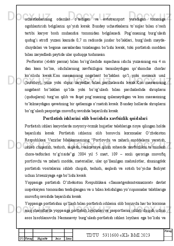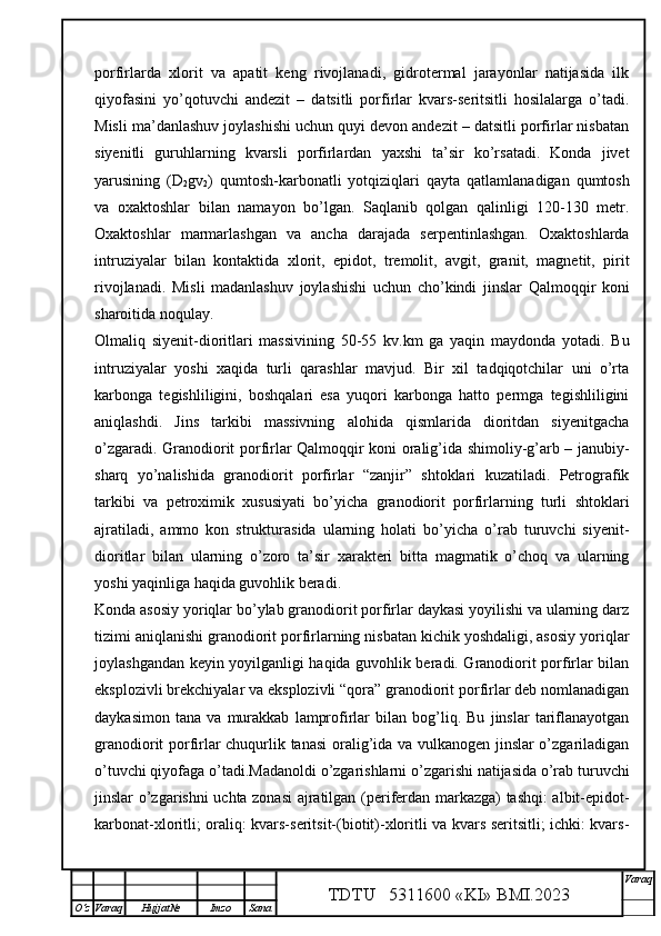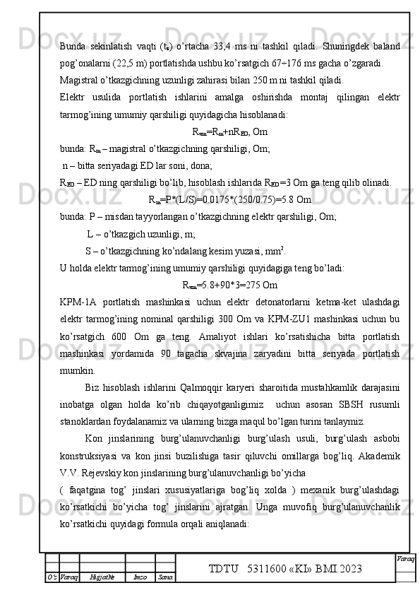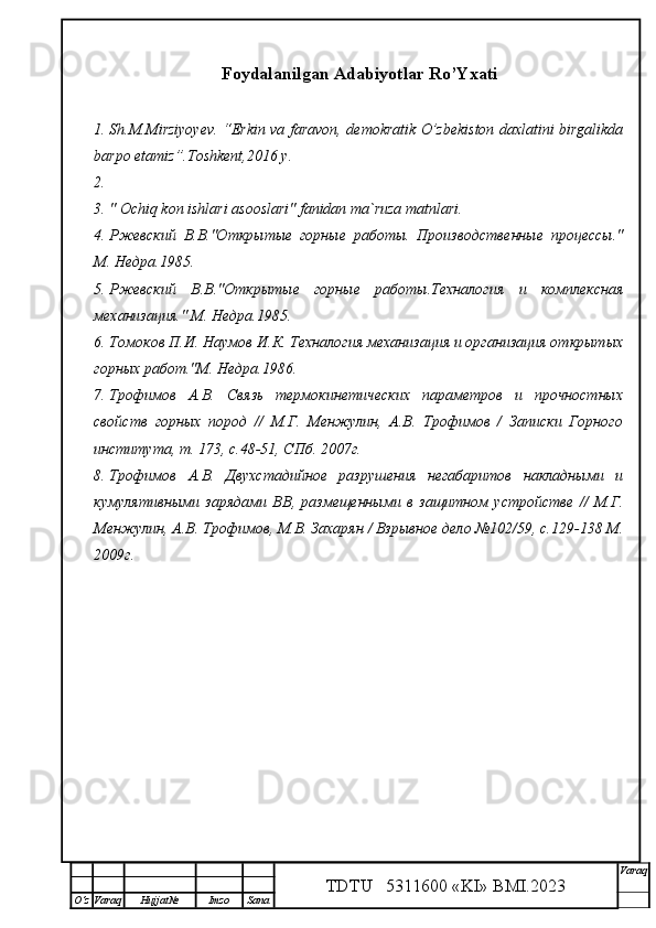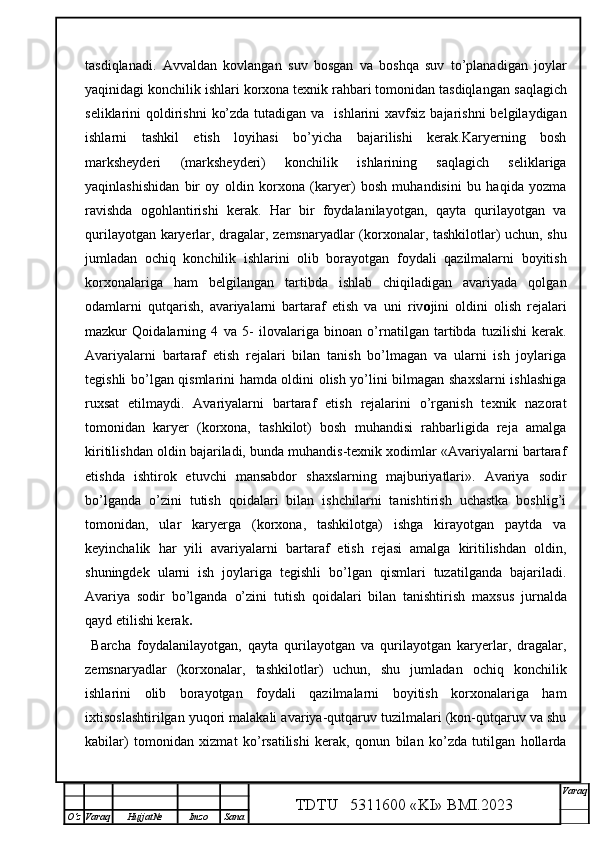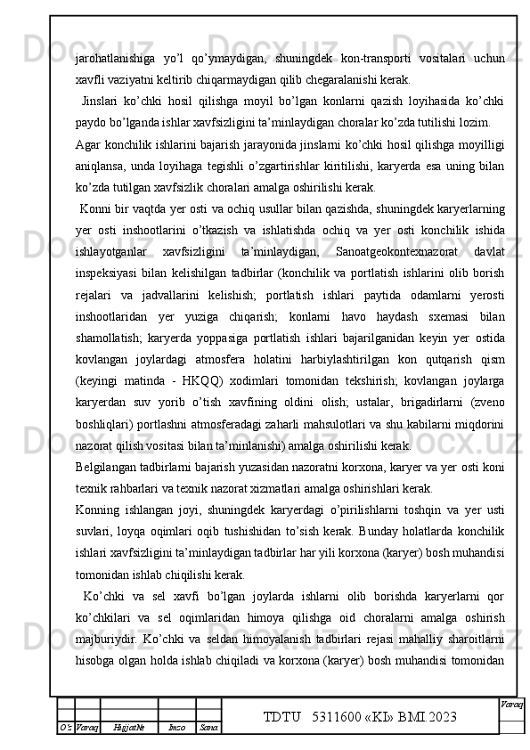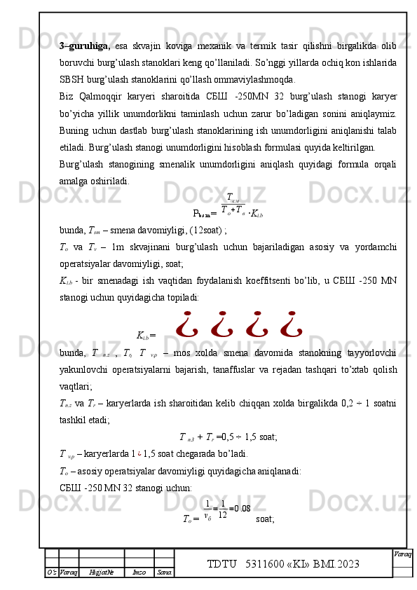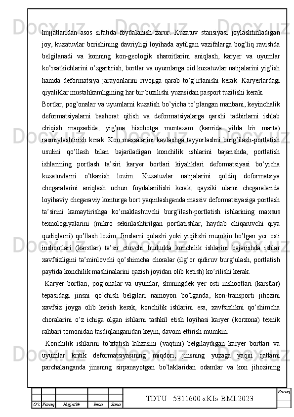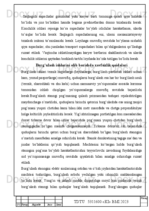 Qalmoqqir konida tog’ jinslarini yuklashni tashkil qilish,yuklash transportlarini tanlash