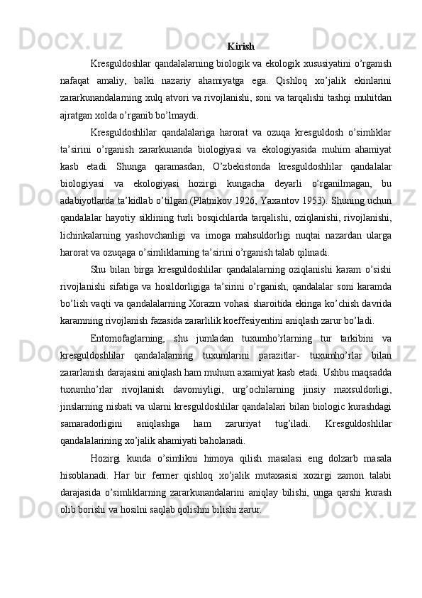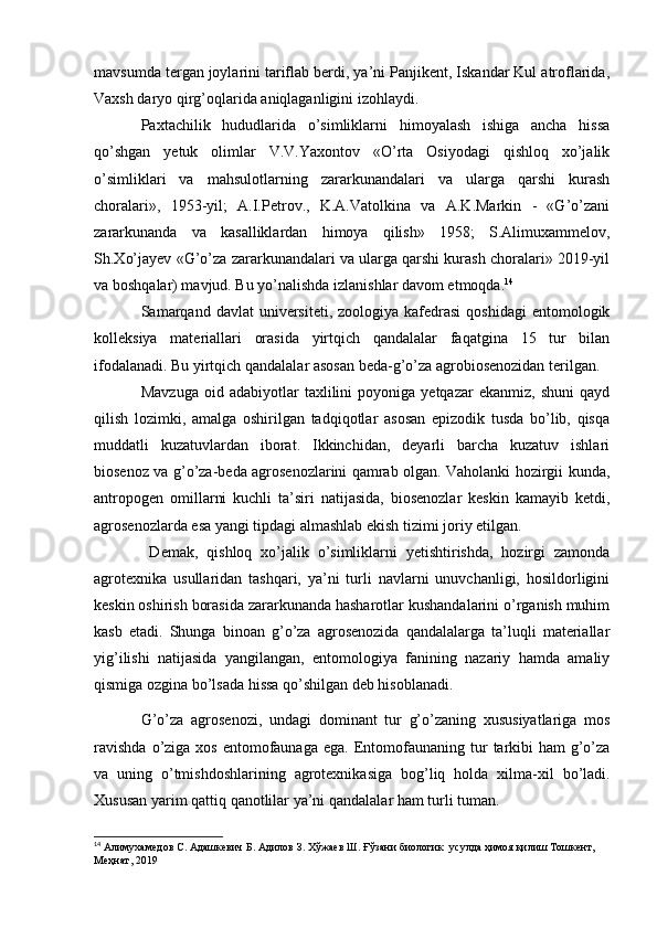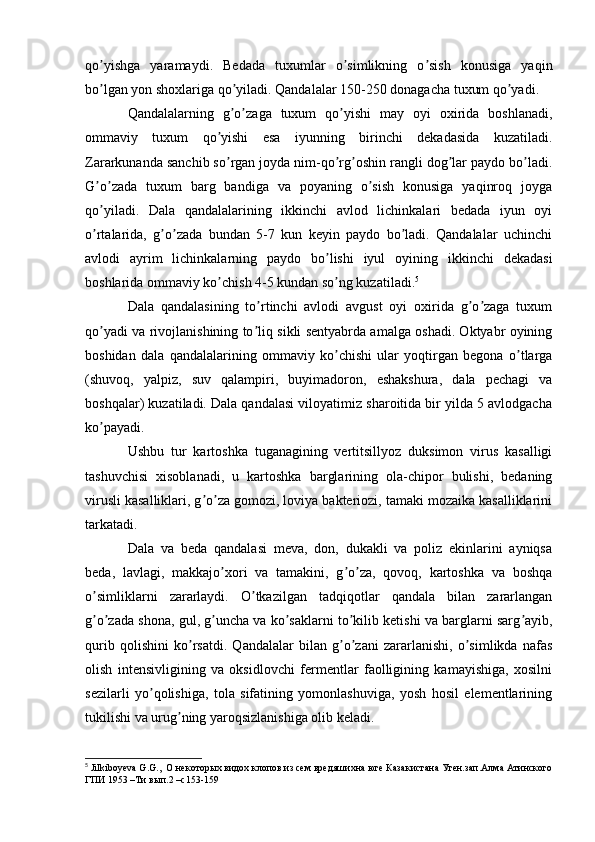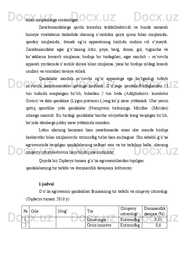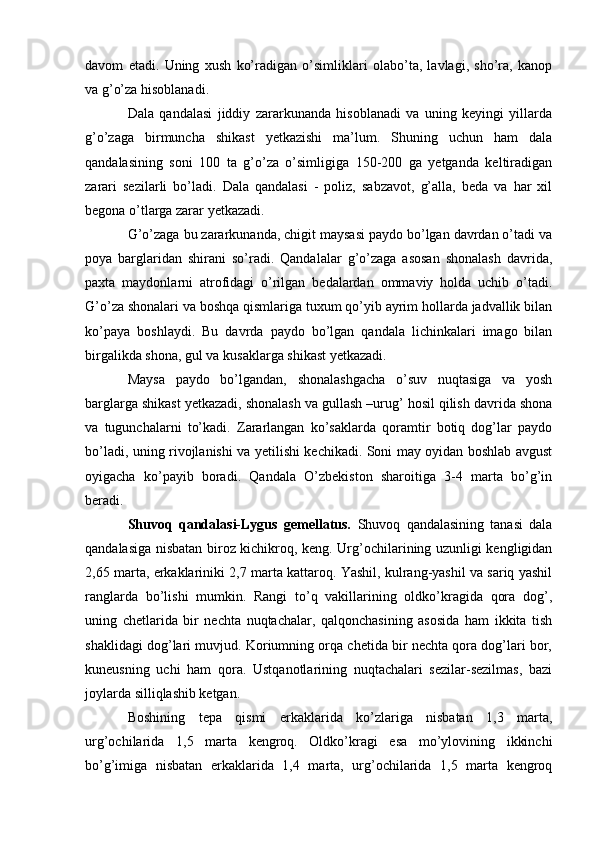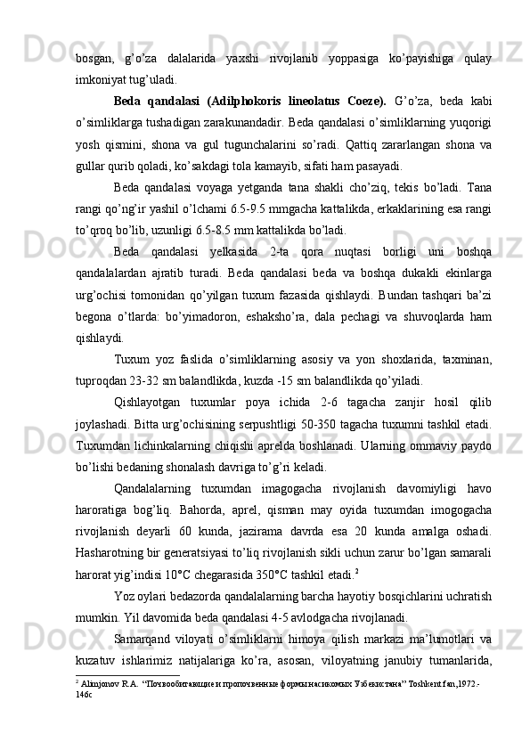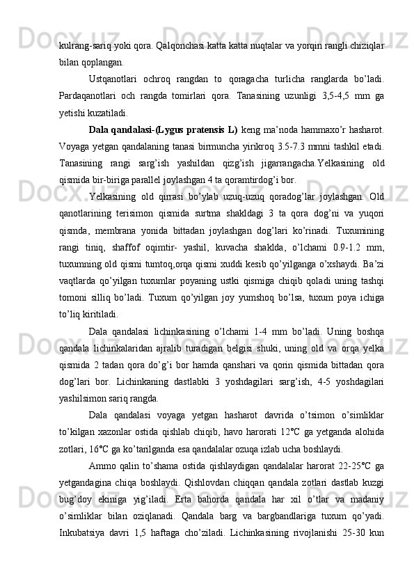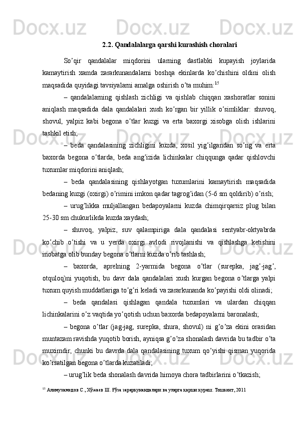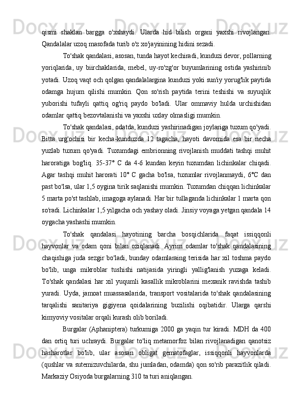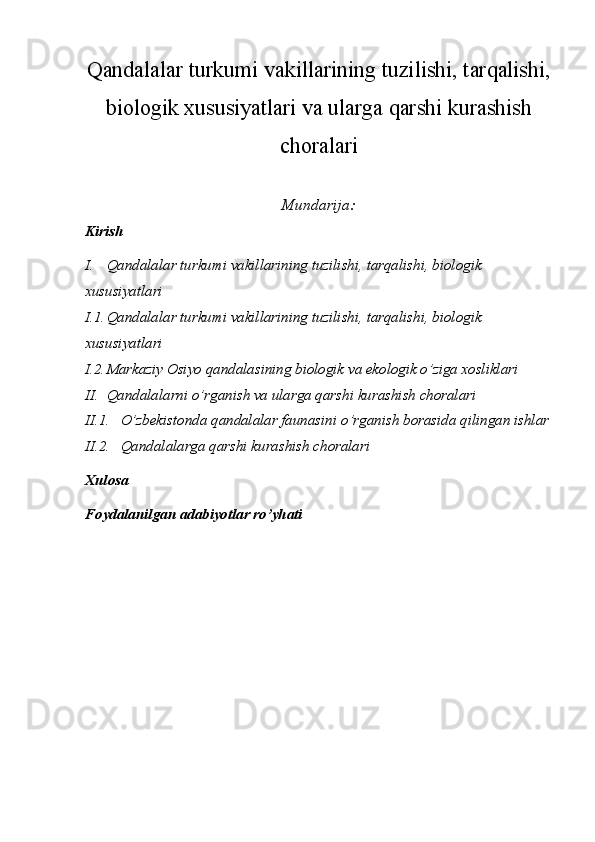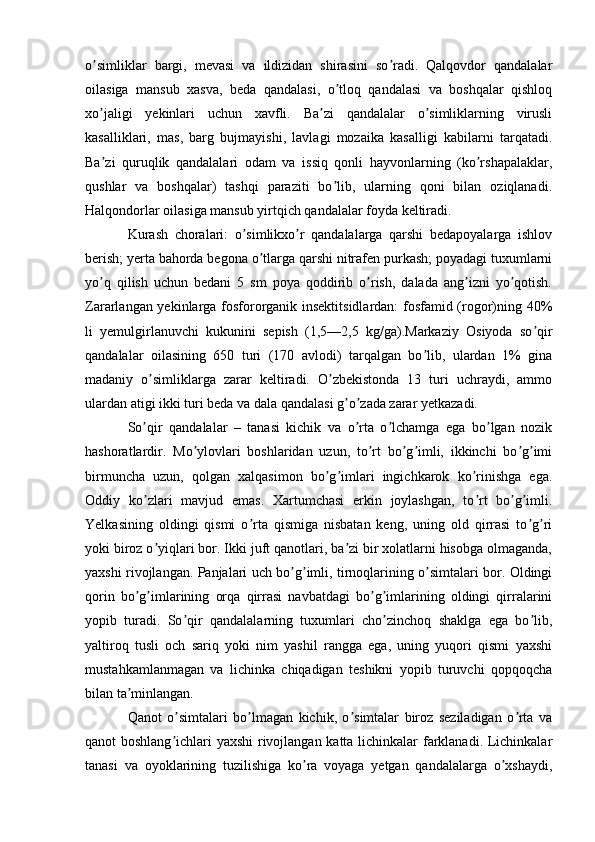 Qandalalar turkumi vakillarining tuzilishi, tarqalishi, biologik xususiyatlari va ularga qarshi kurashish choralari