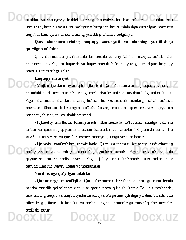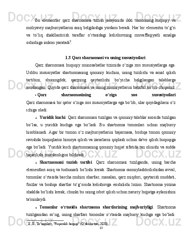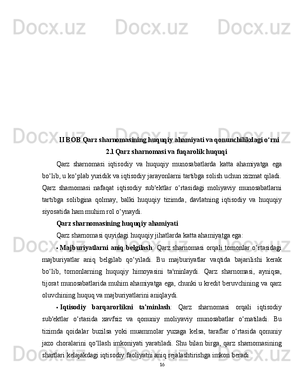 II bob: Qarz sharnomasining huquqiy ahamiyati va qonunchilikdagi o‘rni…….16