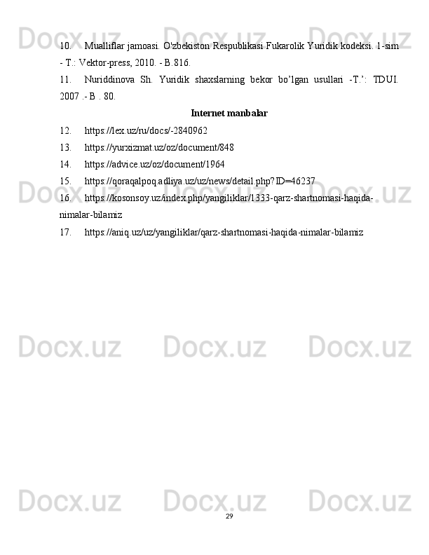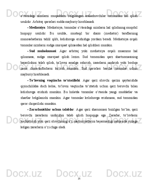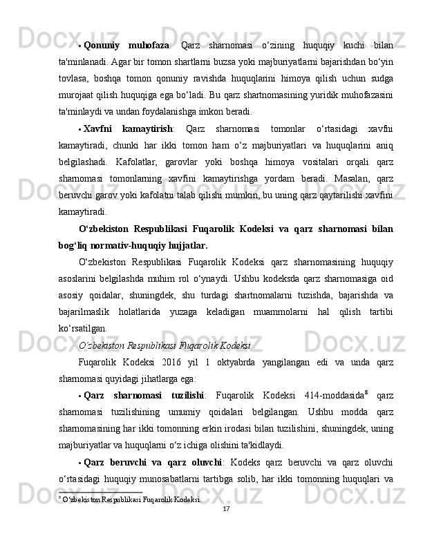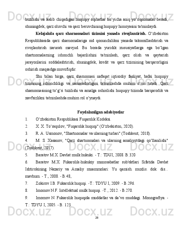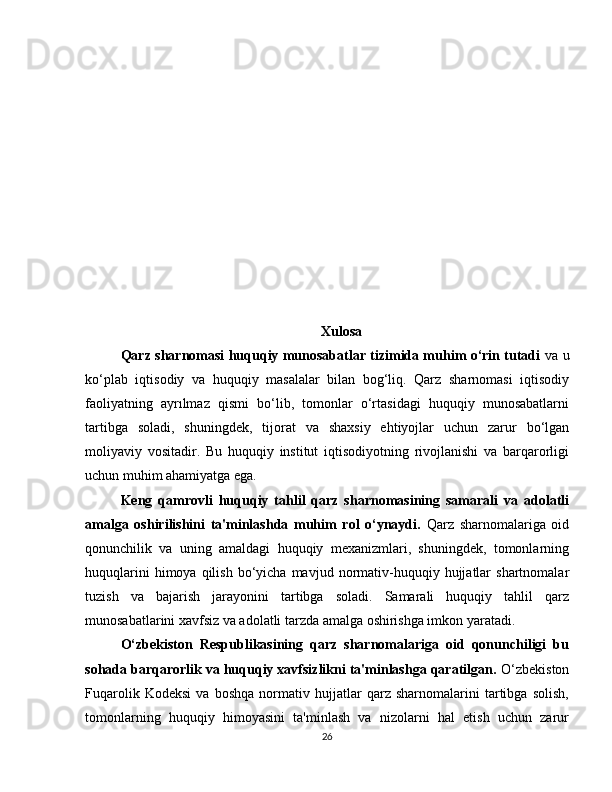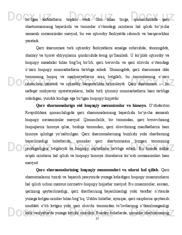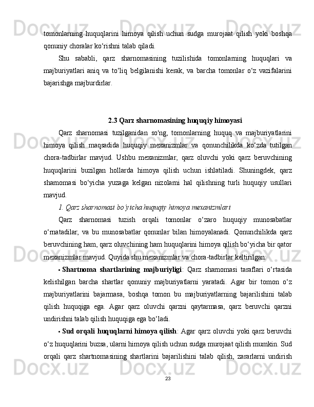 2.3 Qarz sharnomasining huquqiy himoyasi………………………………………23