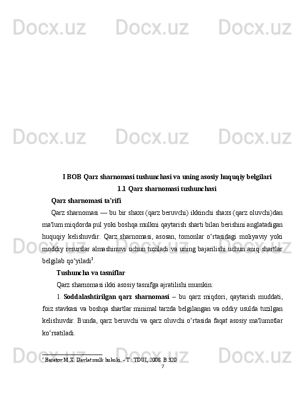 1.1 Qarz sharnomasi tushunchasi……………………………………………………7