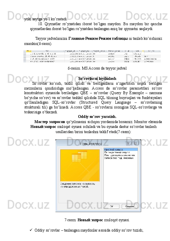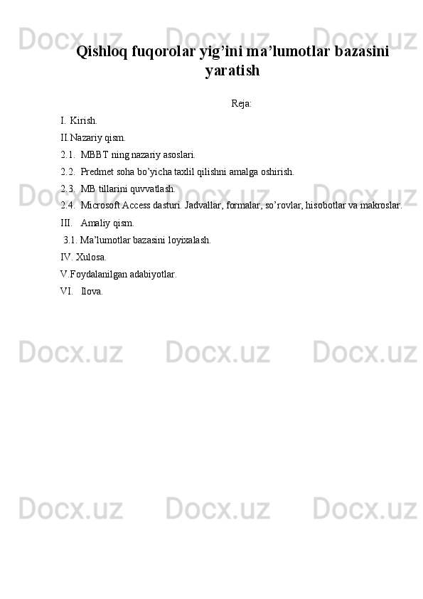 Qishloq fuqorolar yig’ini ma’lumotlar bazasini yaratish