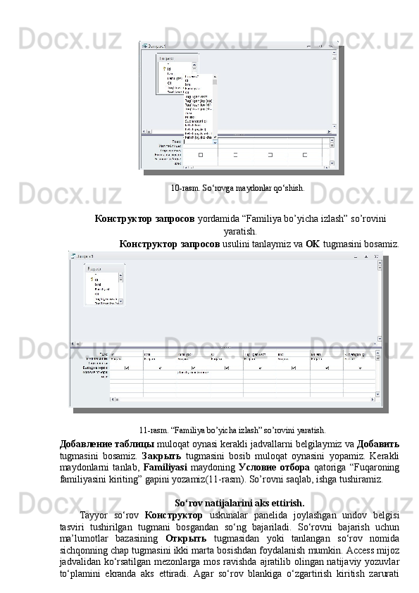 amallar bajarish tezligi oshadi.  10-rasm. So‘rovga maydonlar qo‘shish.