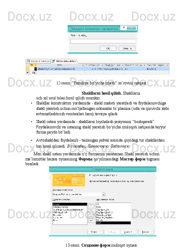 Конструктор   запросов   yordamida “Familiya bo’yicha izlash” so’rovini