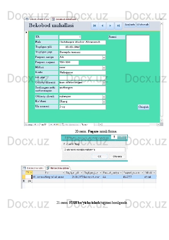 ekzemplyari   haqidagi   ma’lumotlar   saqlanadi.   Access   ma’lumotlar   bazasi   o’ziga