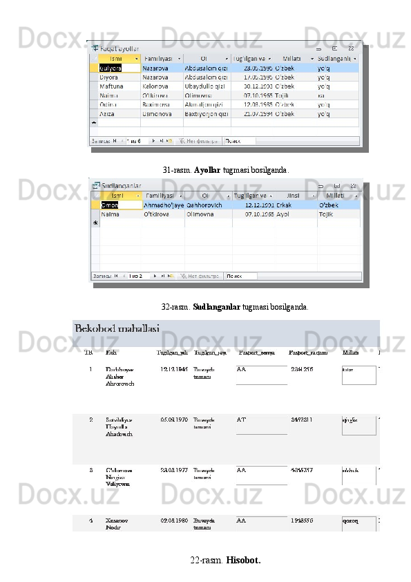 2.Har bir ma’lumotlar sinfiga qanday nom berish mumkin?  31-rasm.  Ayollar  tugmasi bosilganda.