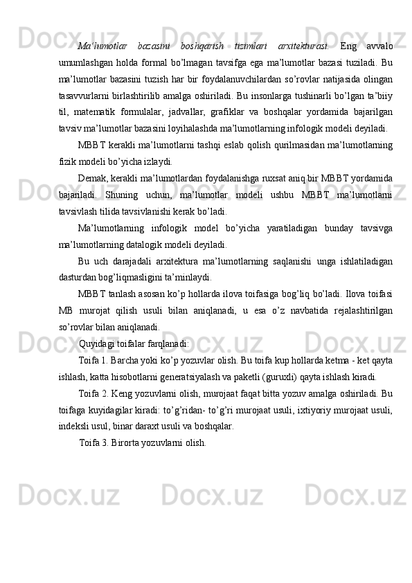 ma’lumotlar   banki   d е b   atalib,   k е yinchalik   esa   “Ma’lumotlar   bazasi”   deb   yuritila