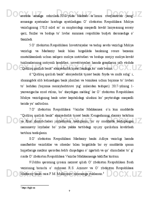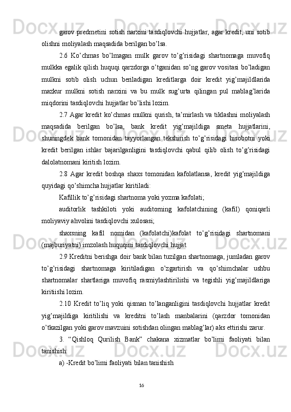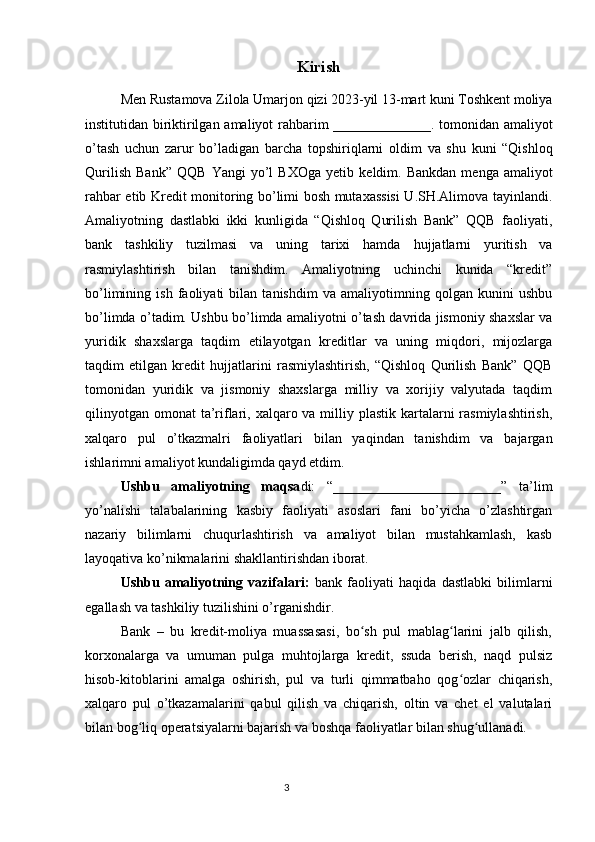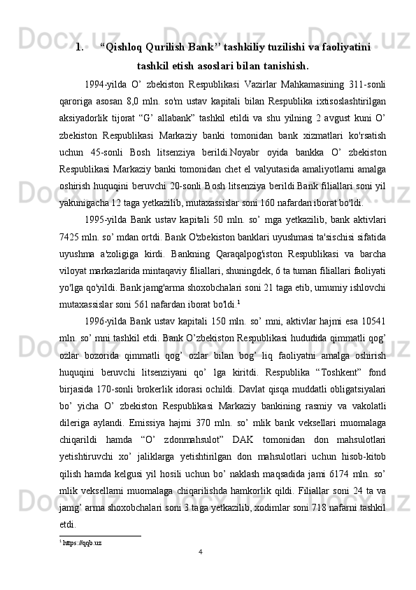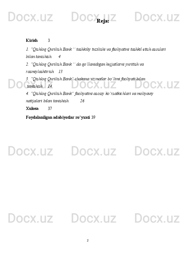 Qishloq Qurilish Bank tashkiliy tuzilishi va faoliyatini tashkil etish asoslari bilan tanishish (hisobot)