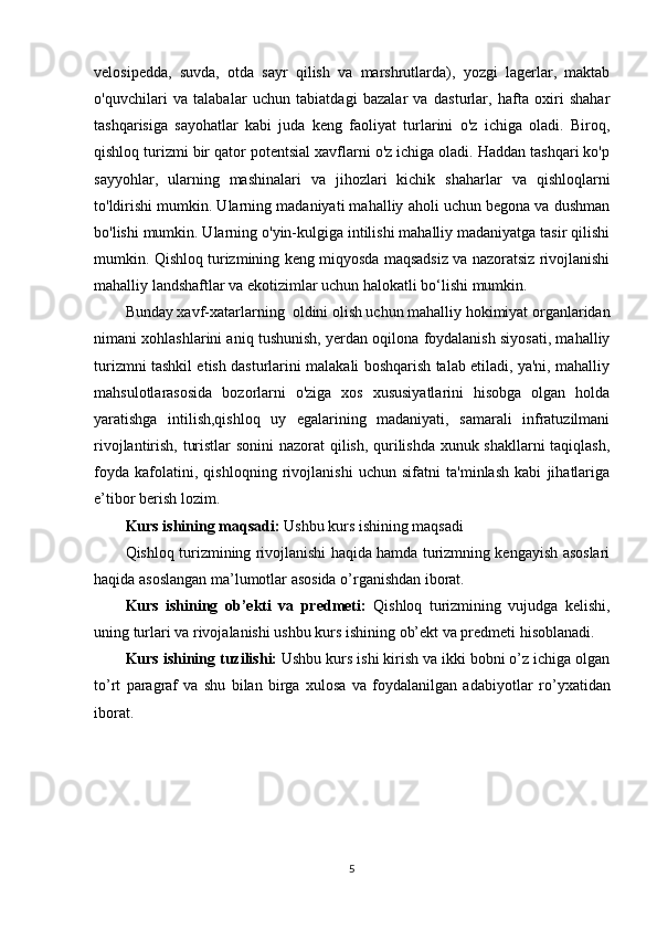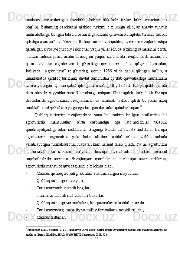 Xalqaro turizm fanidan Qishloq turizmi modellari mavzusida kurs ishi.