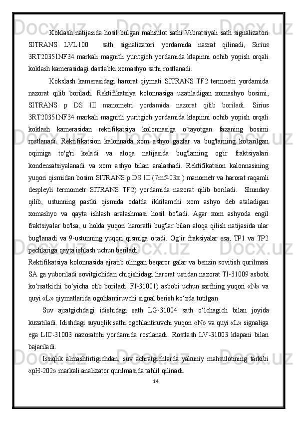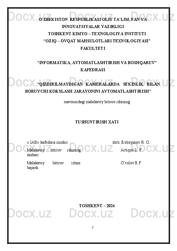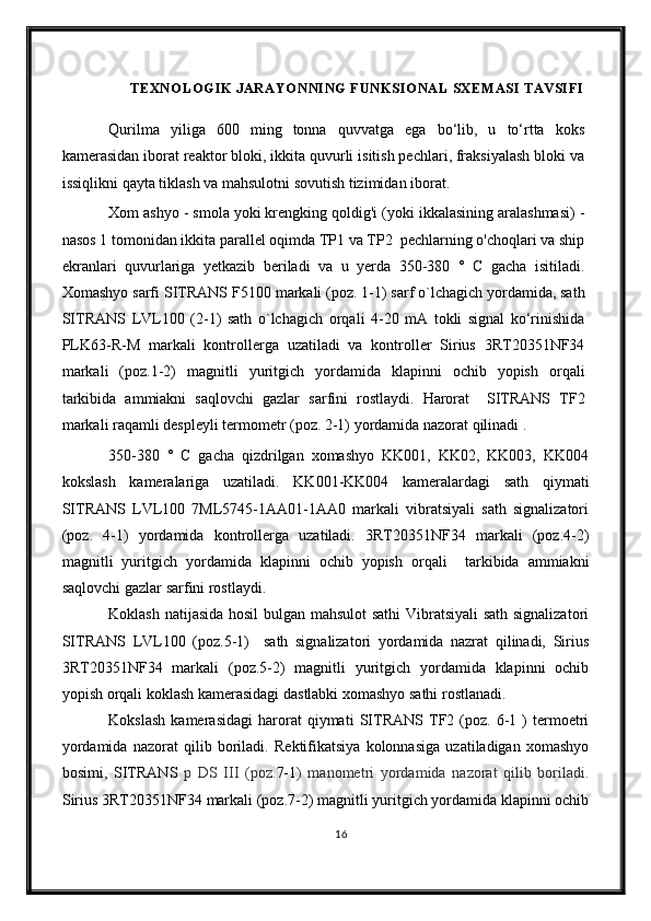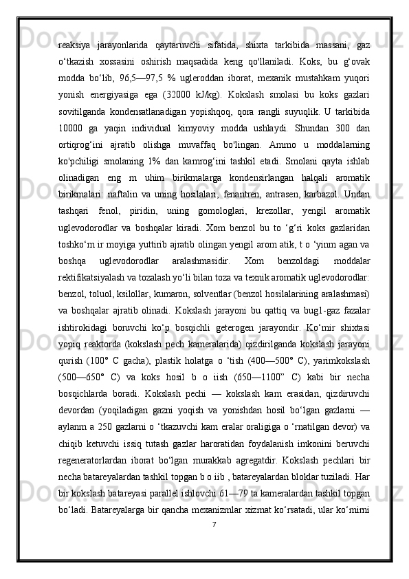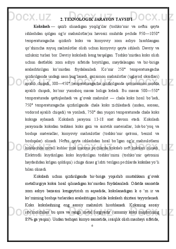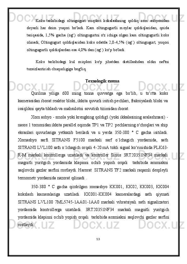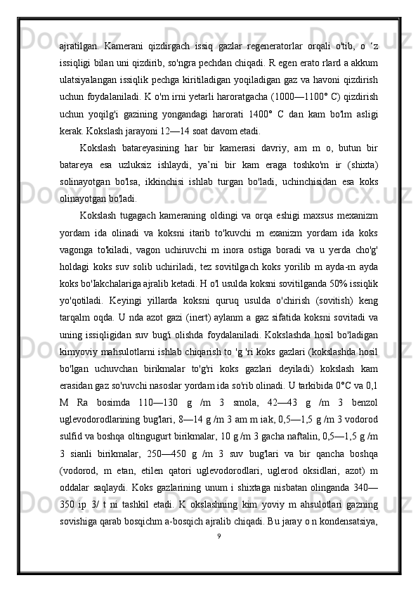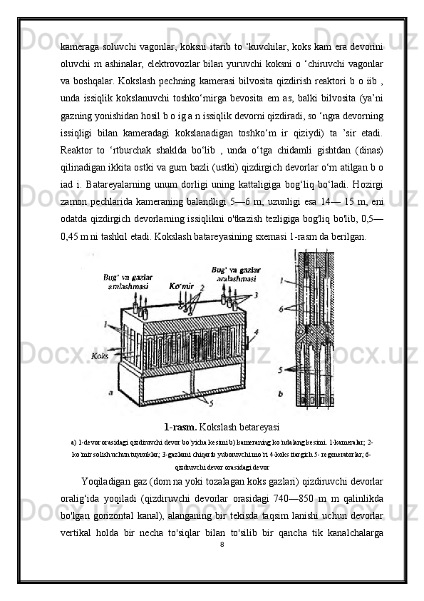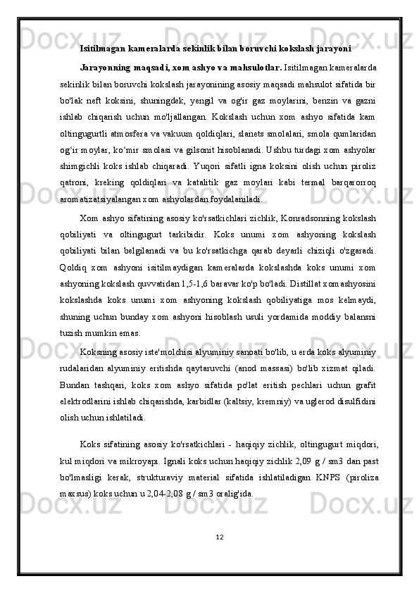 Qizdirilmaydigan kameralarda sekinlik bilan boruvchi kokslash jarayonini avtomatlashtirish