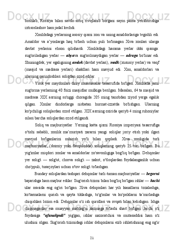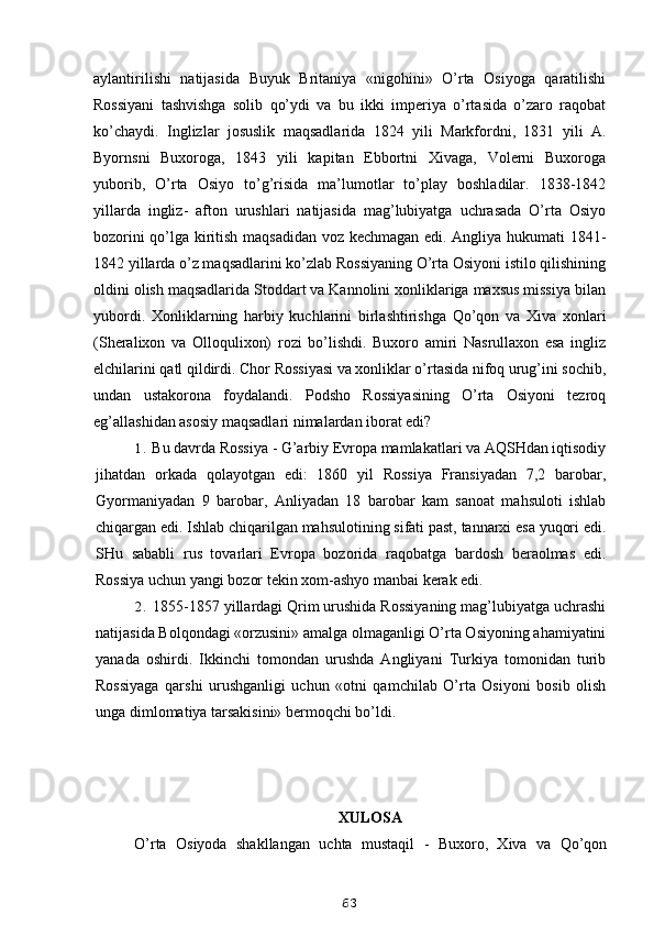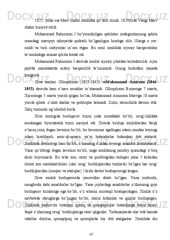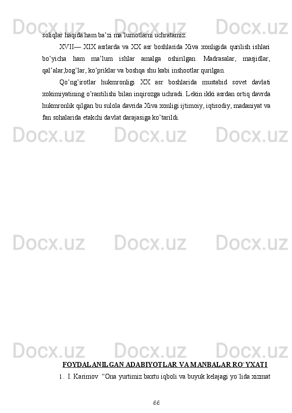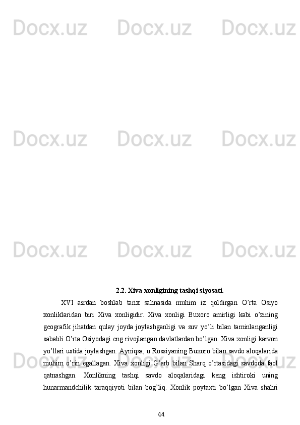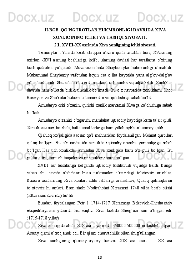 Qo’ng’irot inoqlari hukumronligi davrida Xiva xonligining ichki va tashqi siyosati