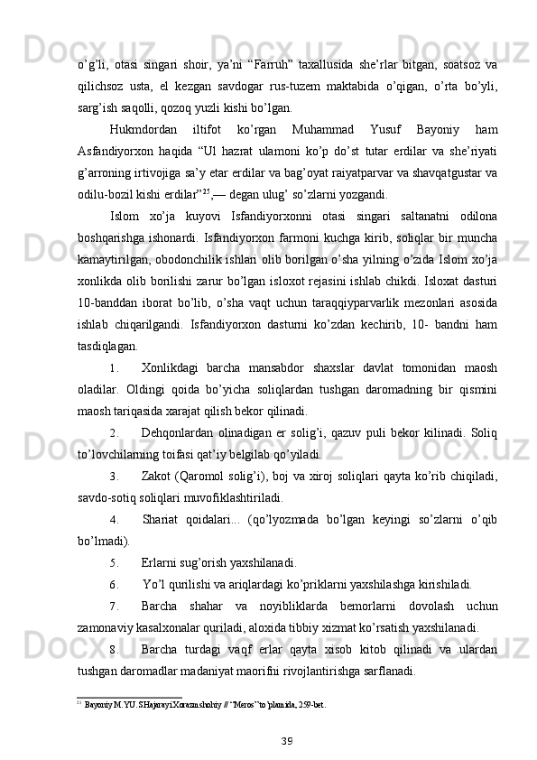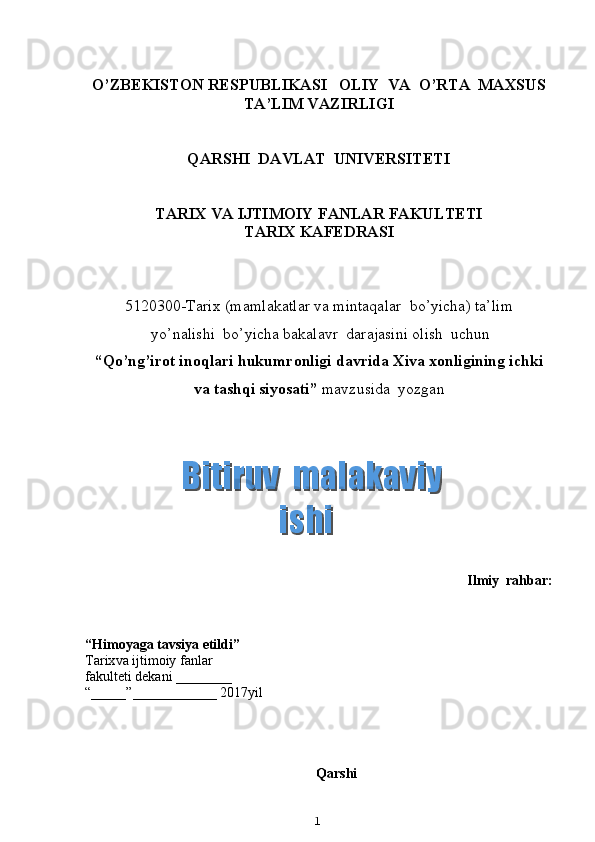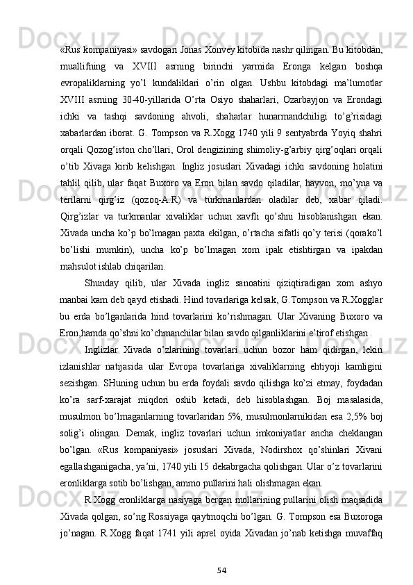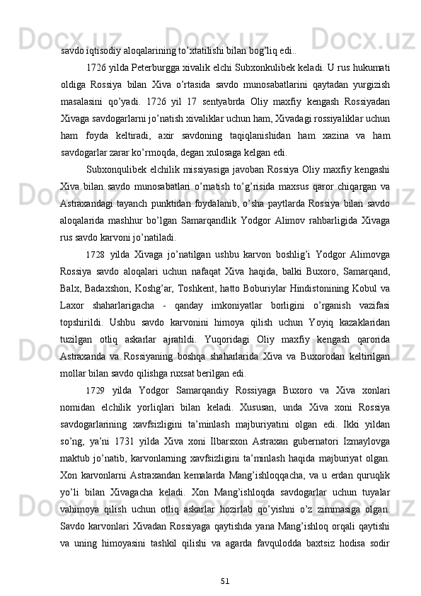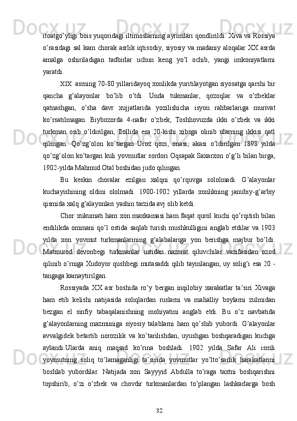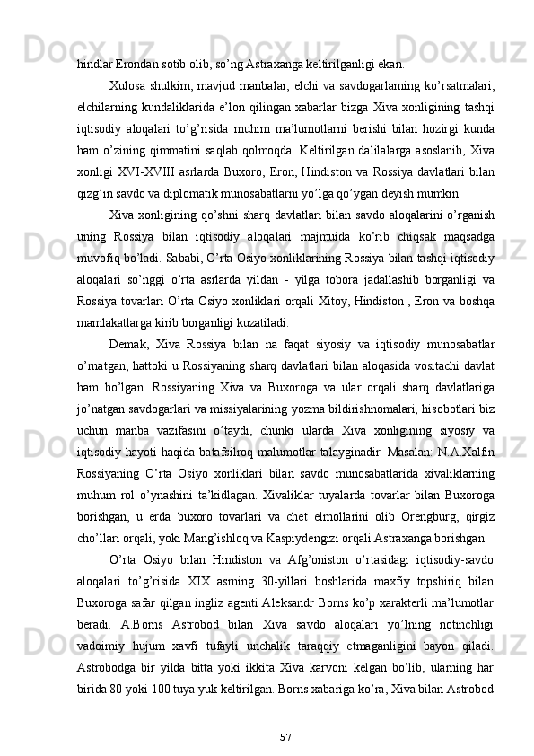 Qo’ng’irot inoqlari hukumronligi davrida Xiva xonligining ichki va tashqi siyosati