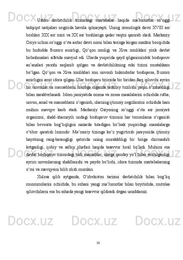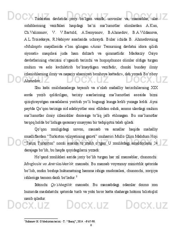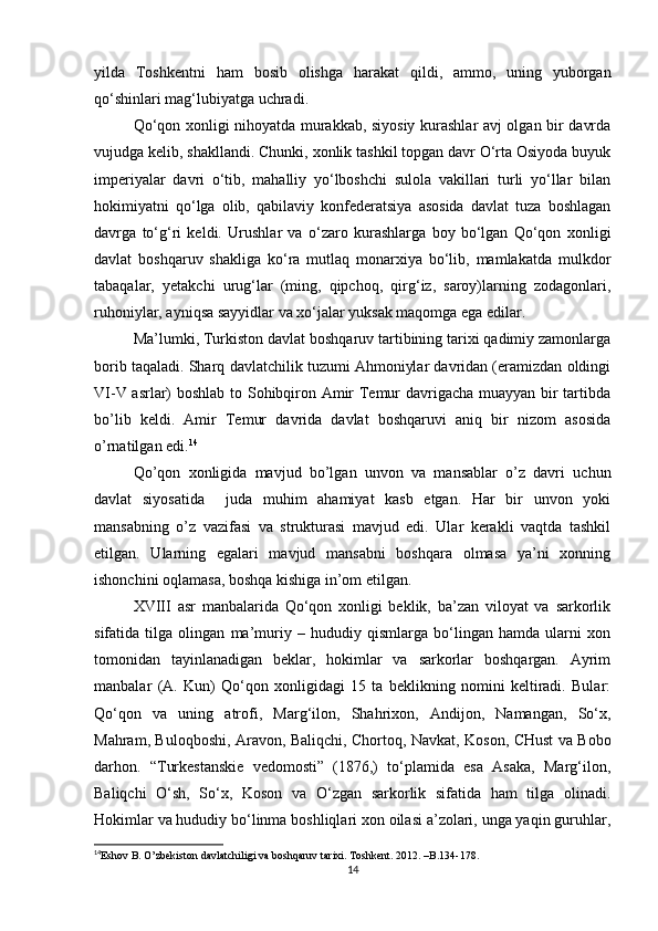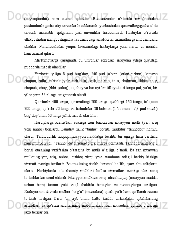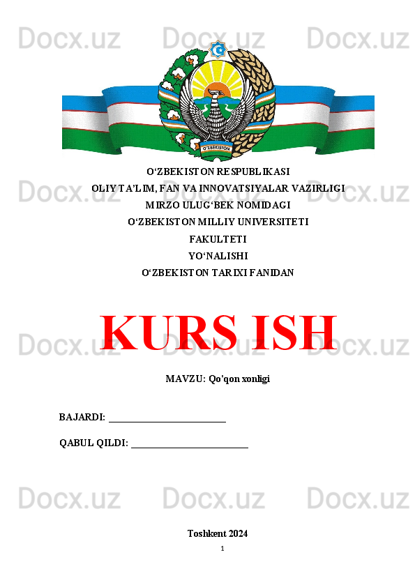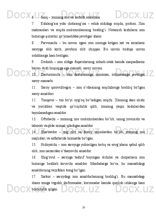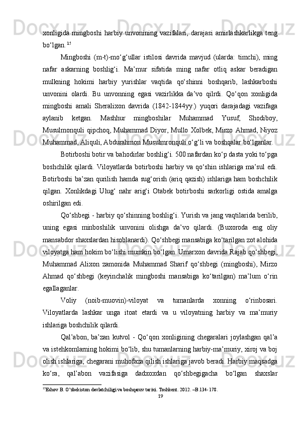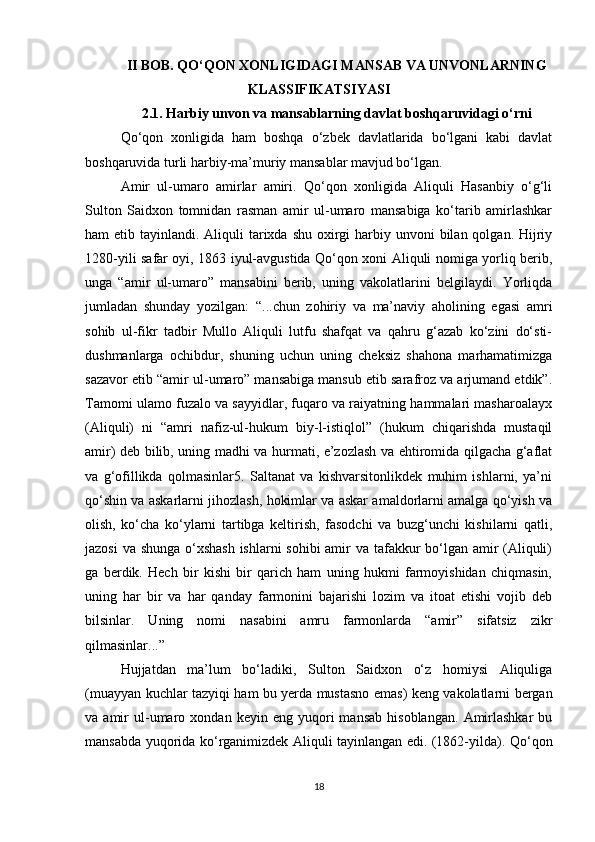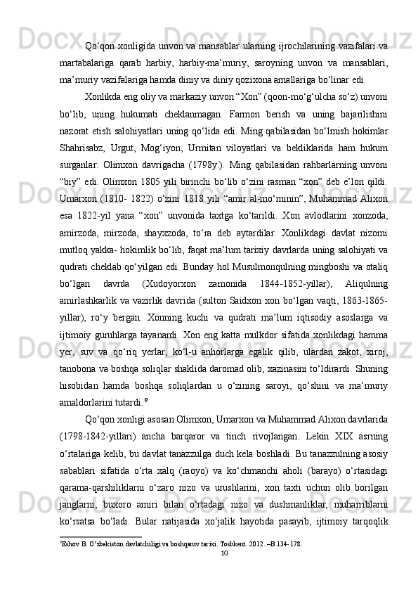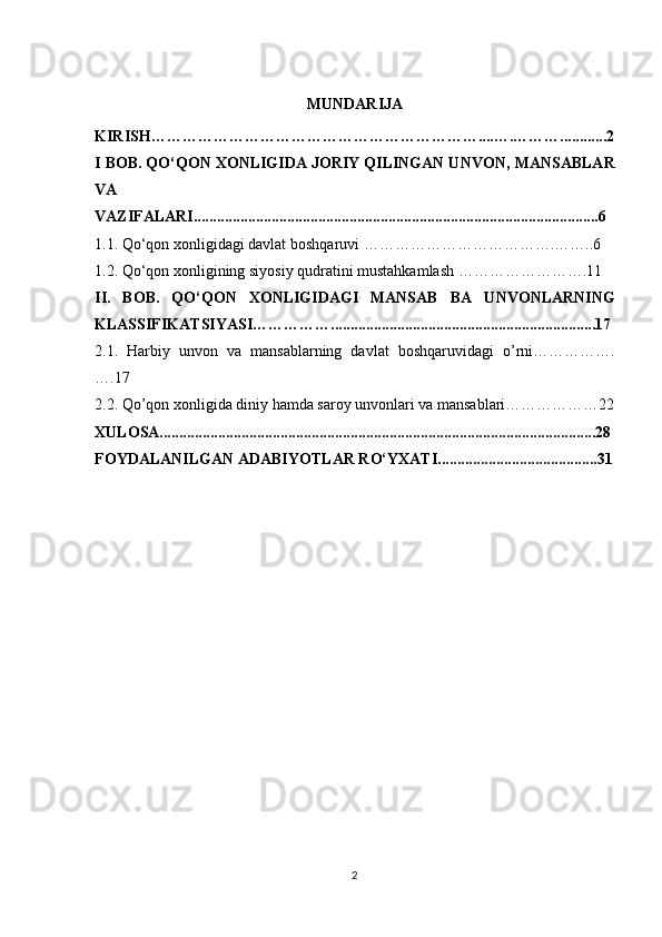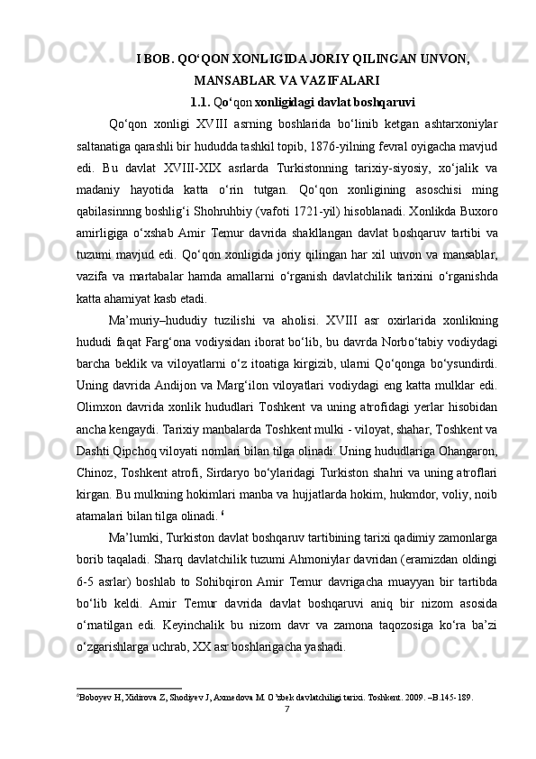I BΟB. QΟ‘QΟN XΟNLIGIDA JΟRIY QILINGAN UNVΟN, MANSABLAR VA VAZIFALARI........................................................................................................6