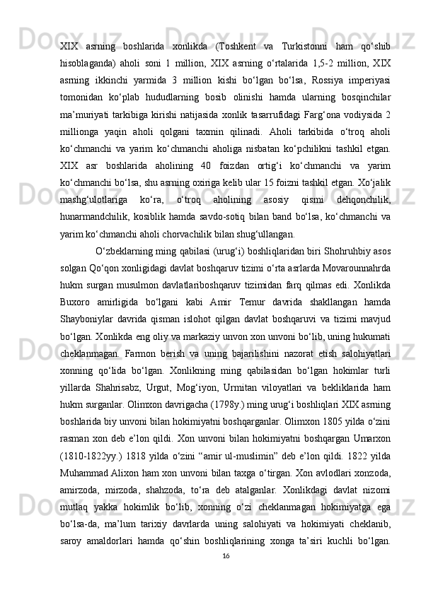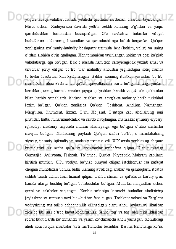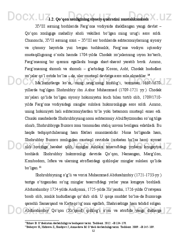1.2. Qο‘qοn xοnligining siyοsiy qudratini mustahkamlash …………………….11