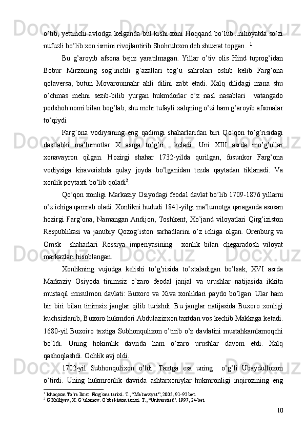 Qo’qon xonligidagi ijtimoiy-siyosiy va madaniy hayot