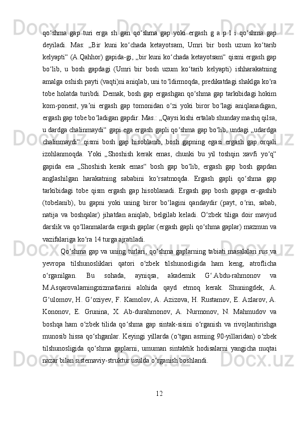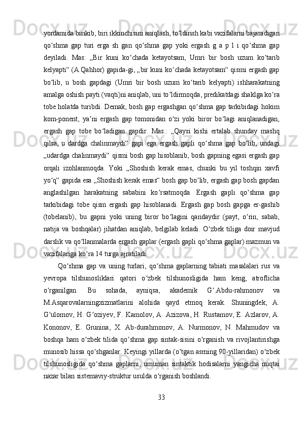 2.1 Ega ergash gapli qo’shma gap……………………………………………….23