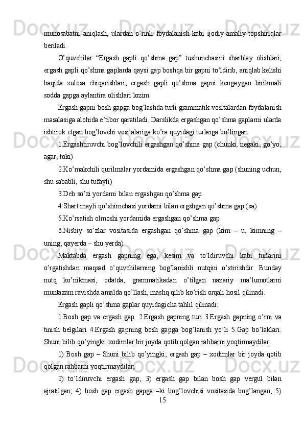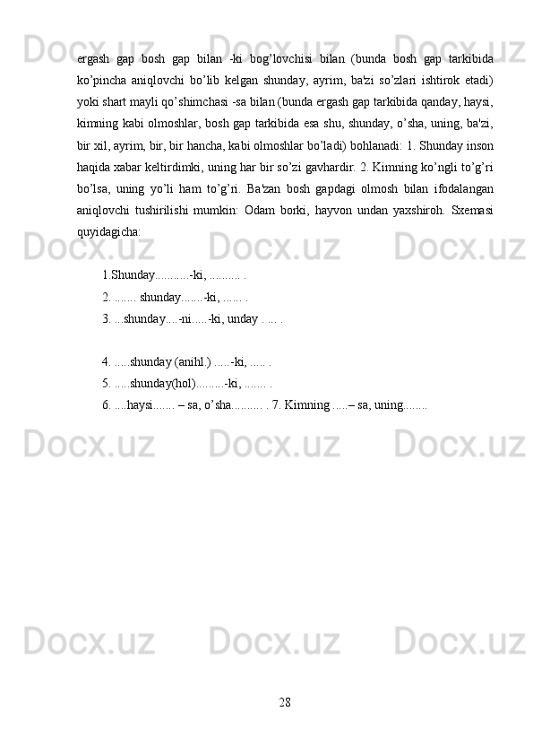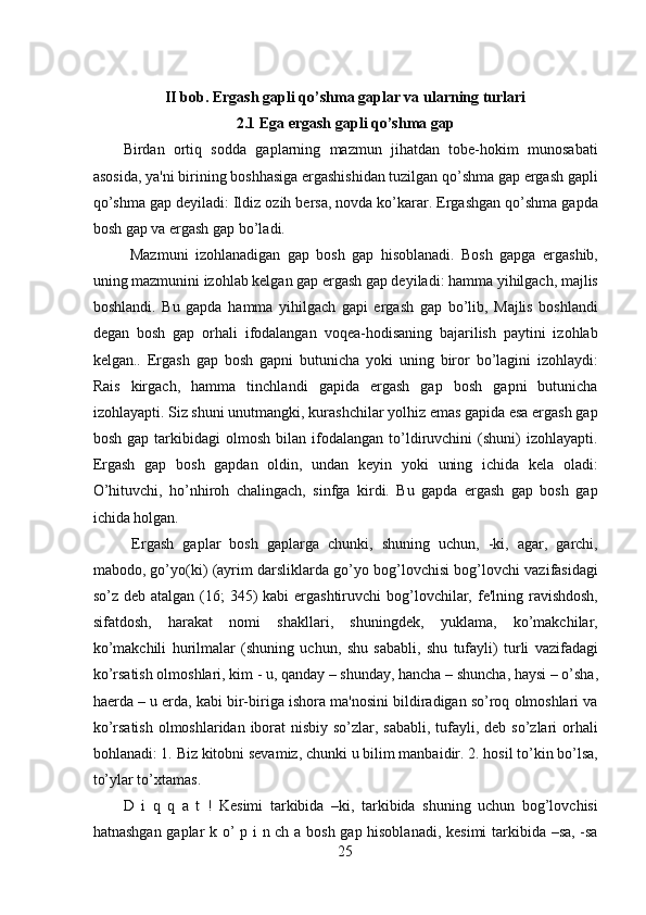 II bob. Ergash gapli qo’shma gaplar va ularning turlari…………………………23