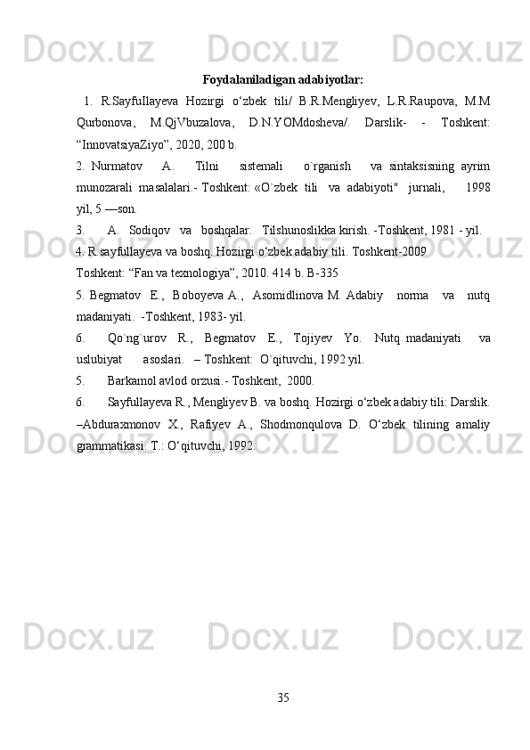 Foydalanilgan adabiyotlar ro’yxati……………………………………………32