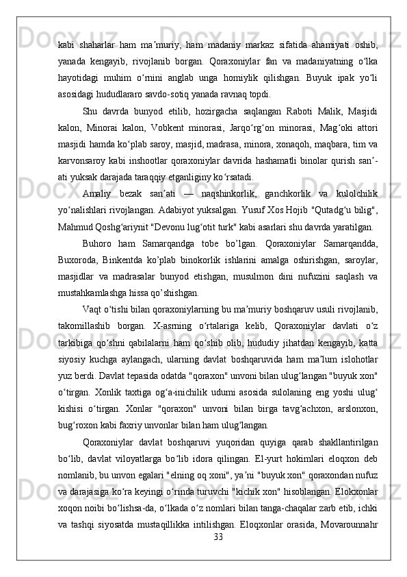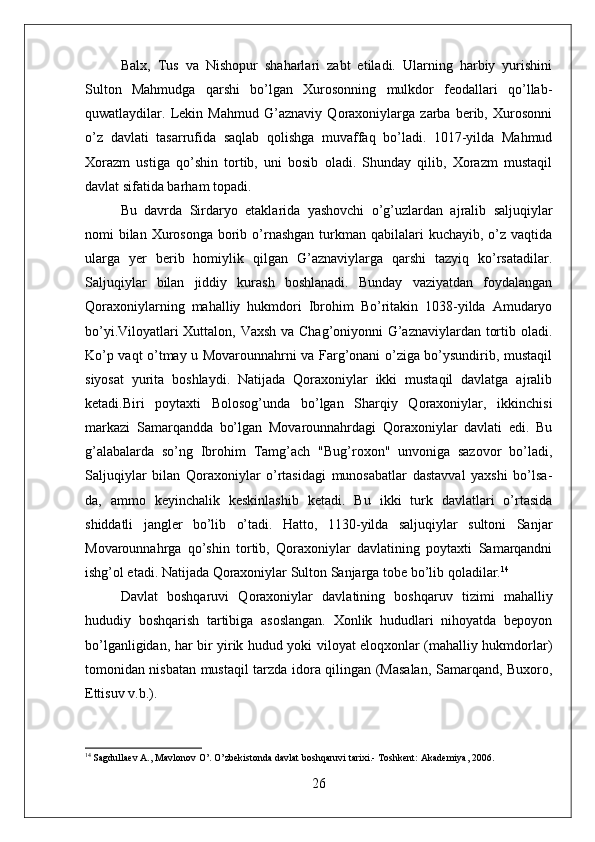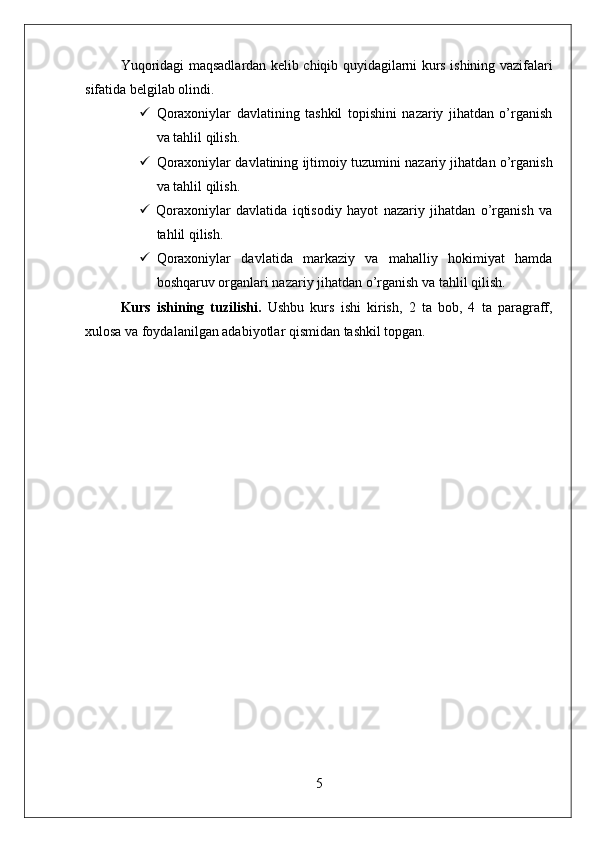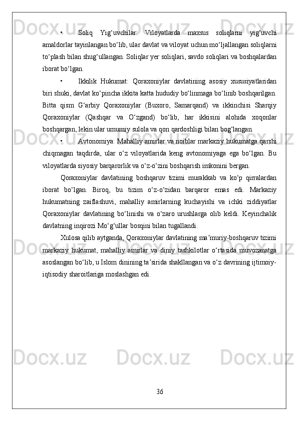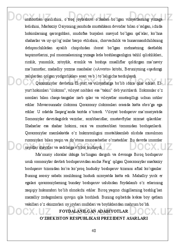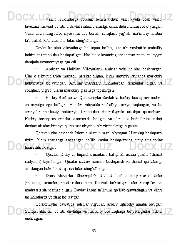 QORAXONIYLAR DAVLAT BOSHQARUV