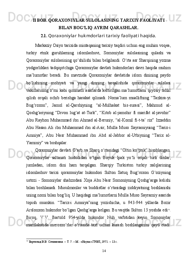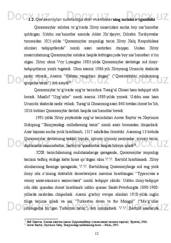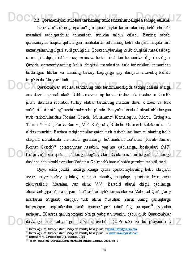Qoraxoniylar sulolasi tarixiga oid manbalar tahlili