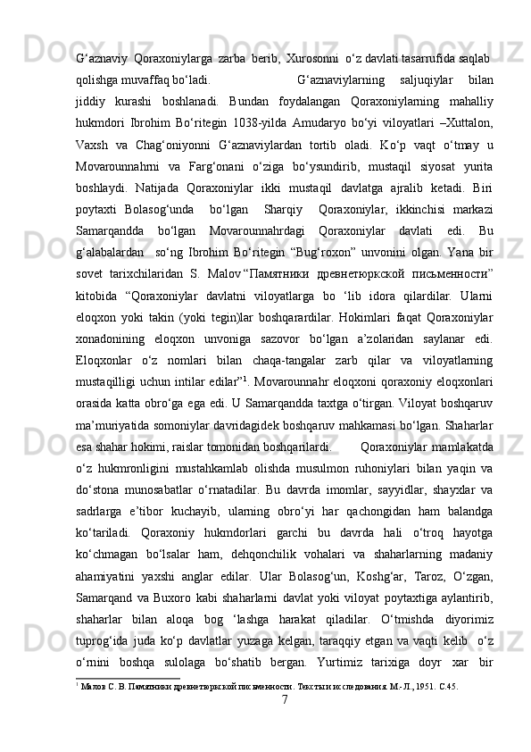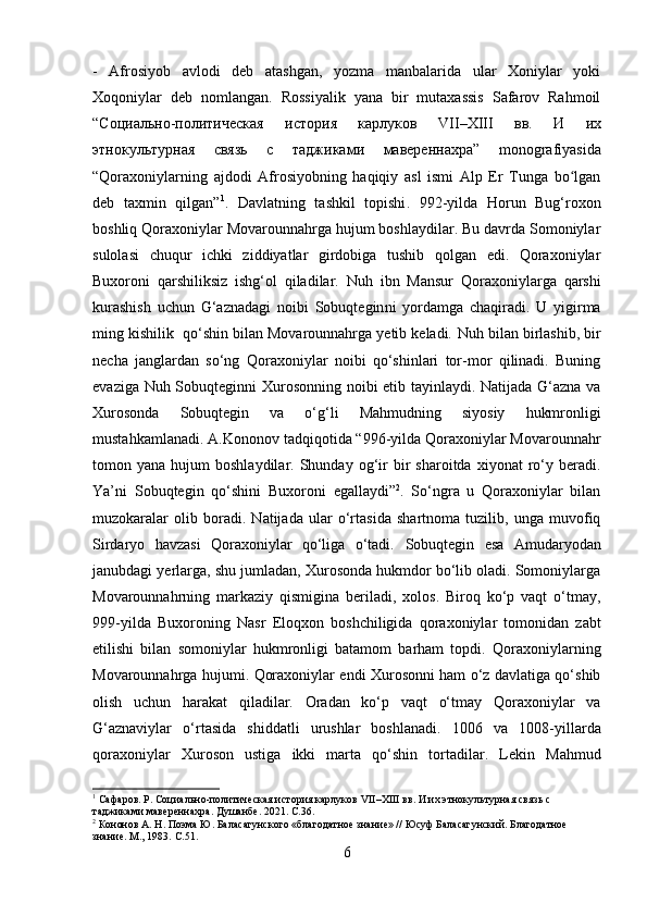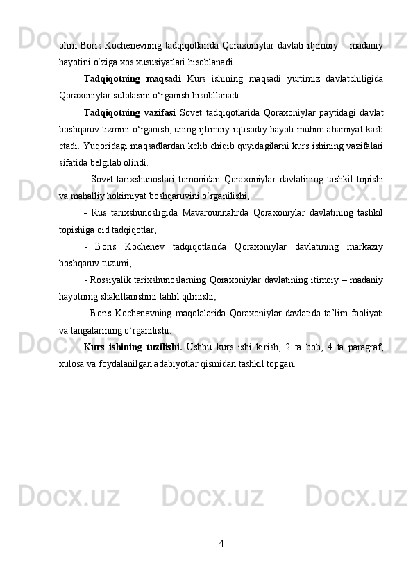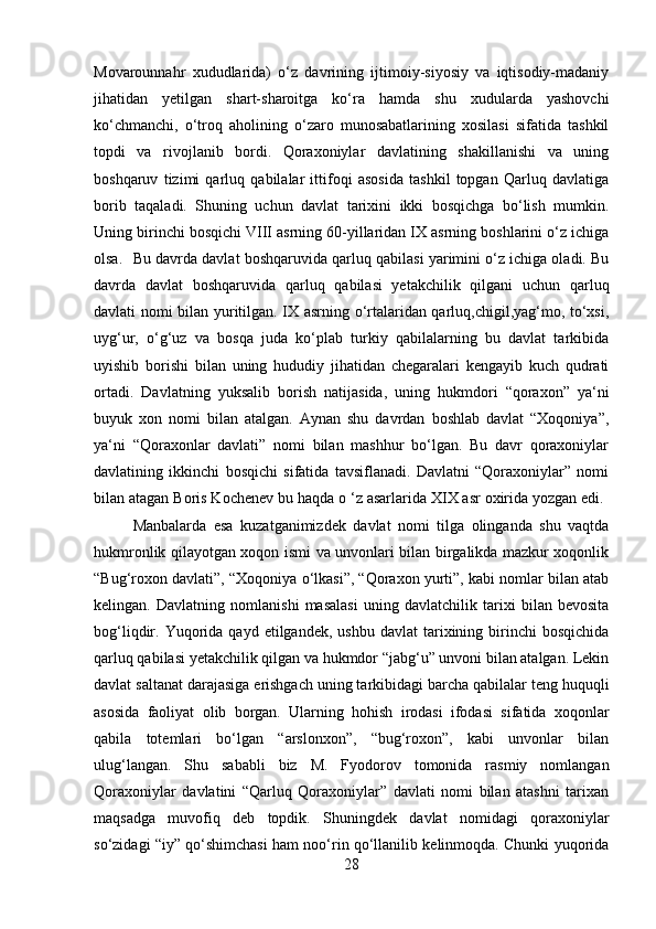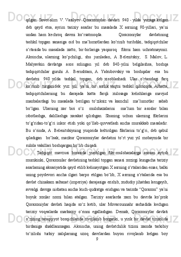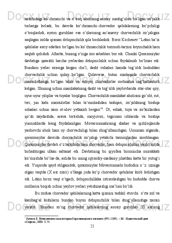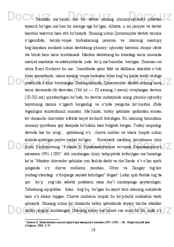 Qoraxoniylar tarixiga doir rus va sovet davri tadqiqotlari (Boris Kochnev asarlari asosida)