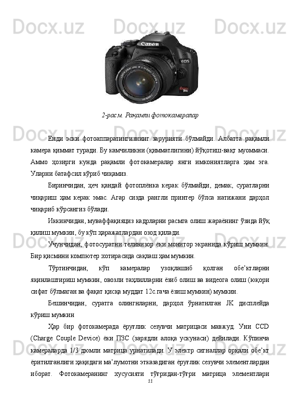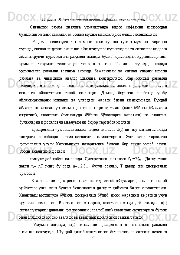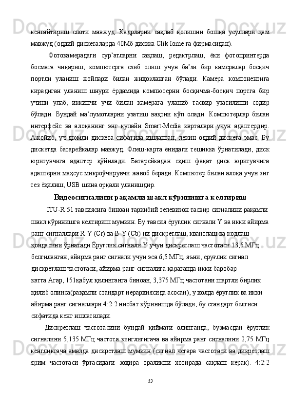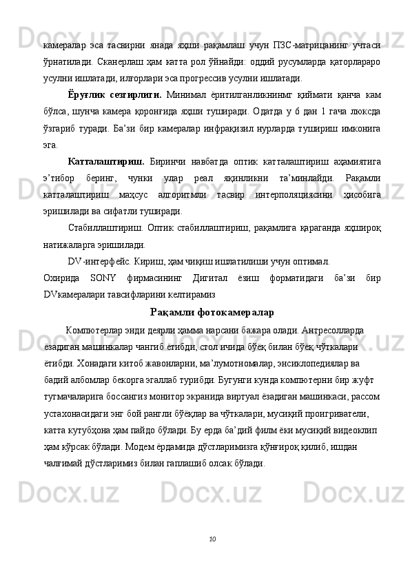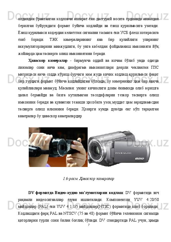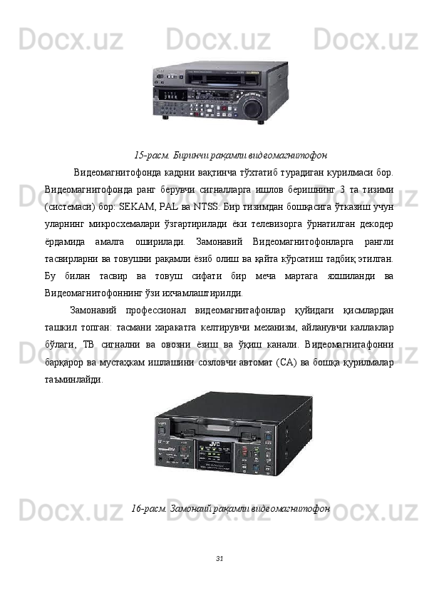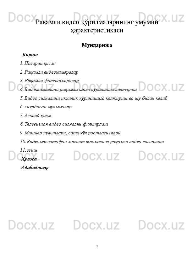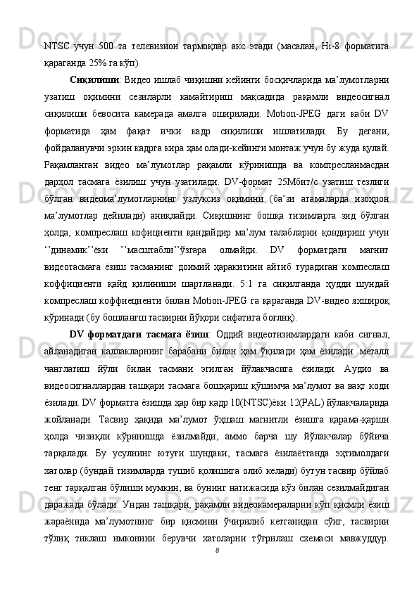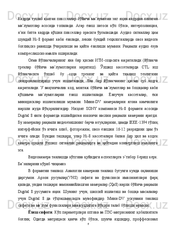 Рақамли видео қўрилмаларининг умумий характеристикаси