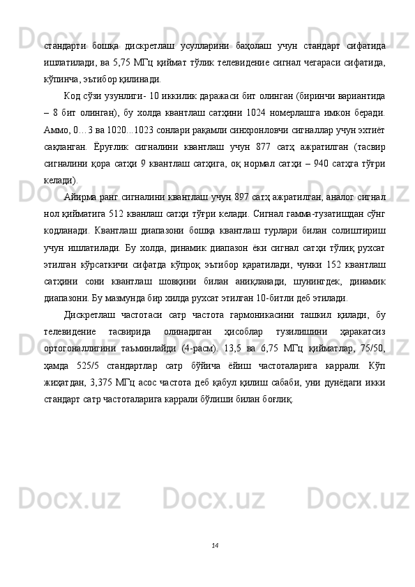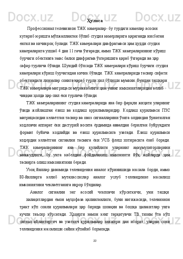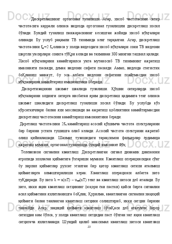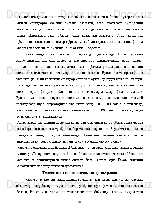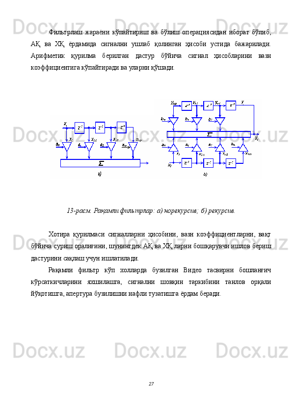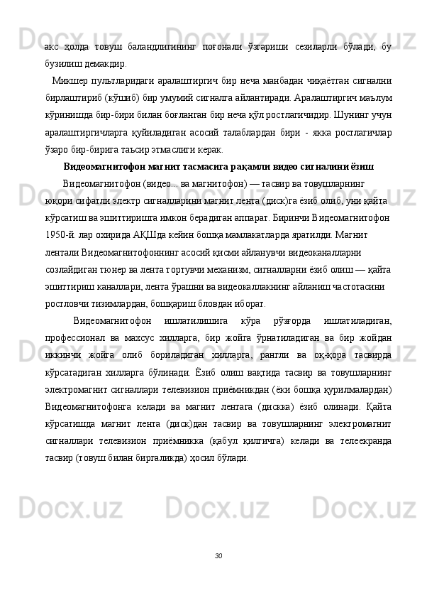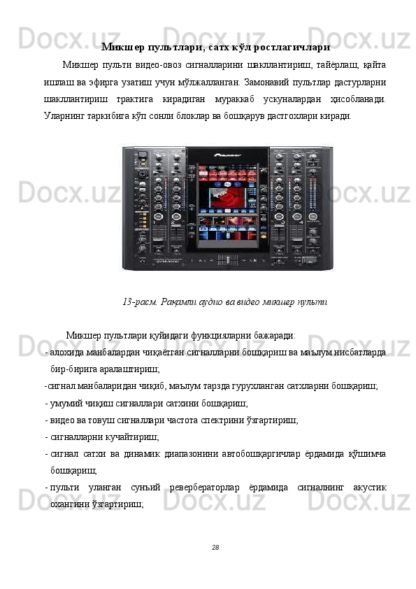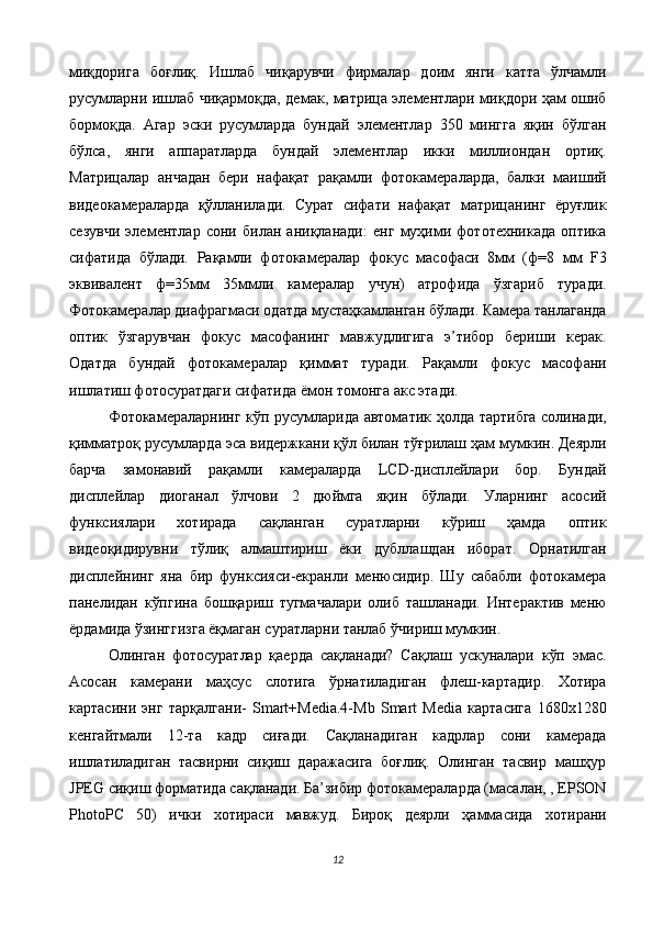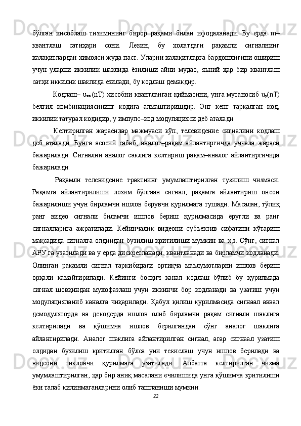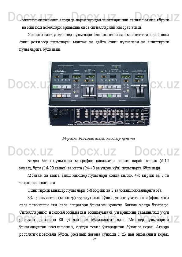 Рақамли видео қўрилмаларининг умумий характеристикаси
