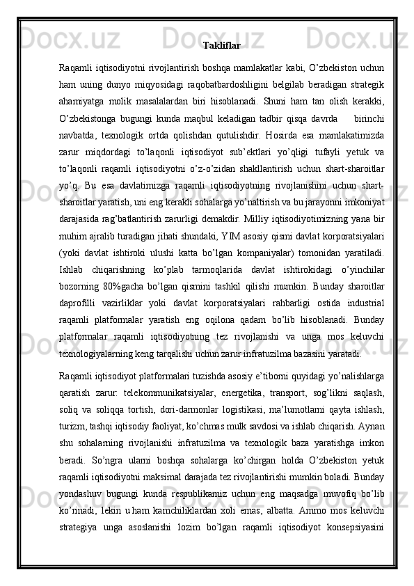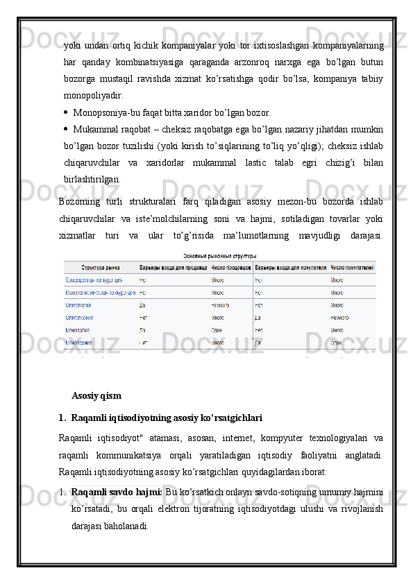 Raqamli iqtisodiyotning asosiy ko’rsatgichlari