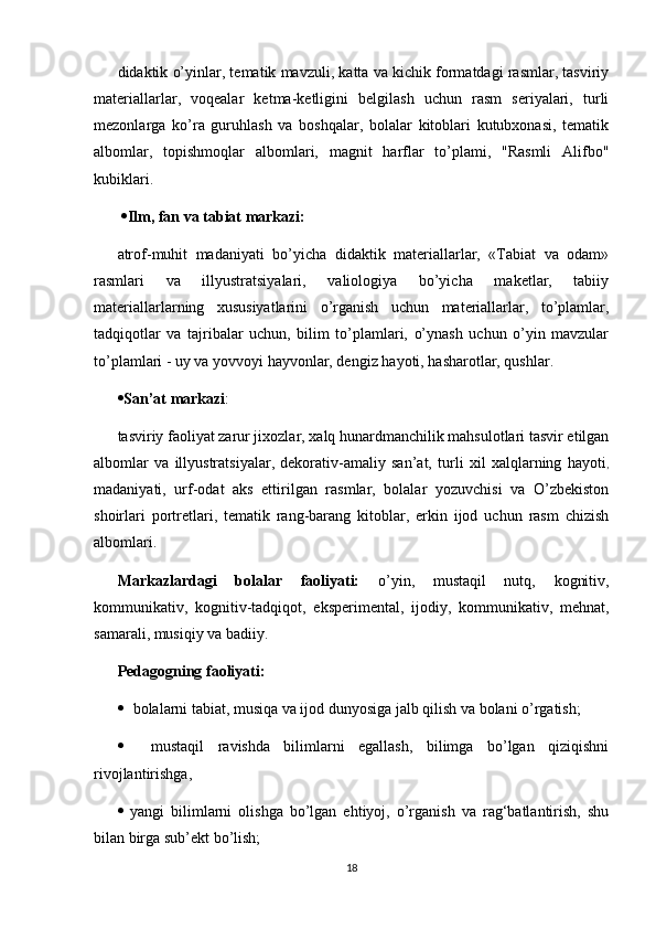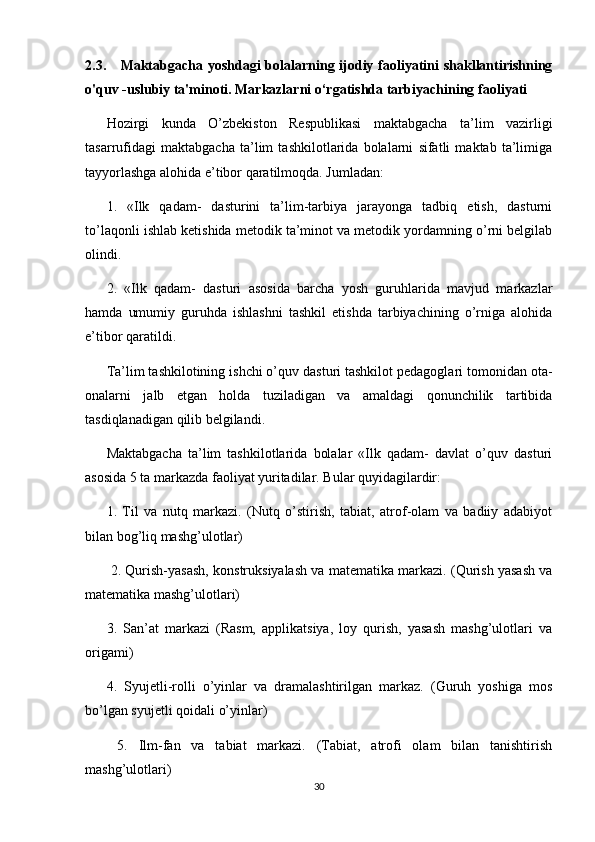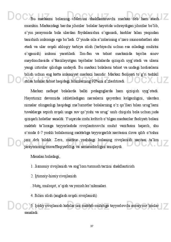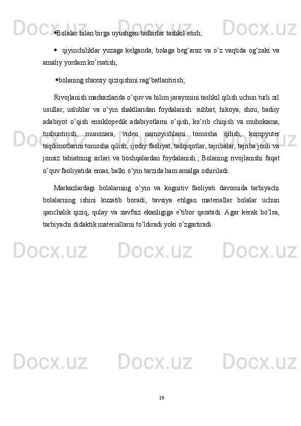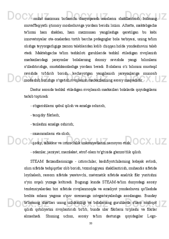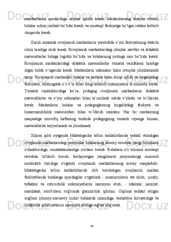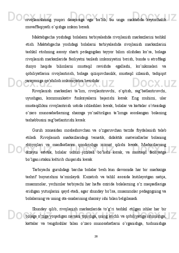 RIVOJLANISH MARKAZLARI VA UMUMIY GURUH BO'LIB TASHKIL ETILADIGAN TA'LIMIY FAOLIYATNING BOG'LIQLIGI