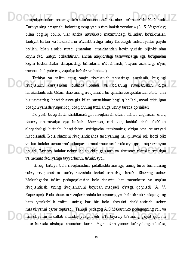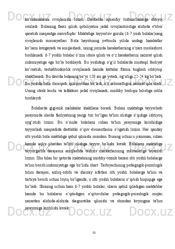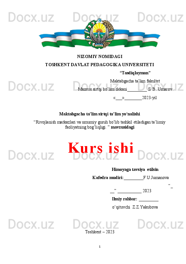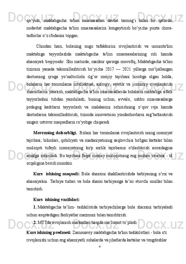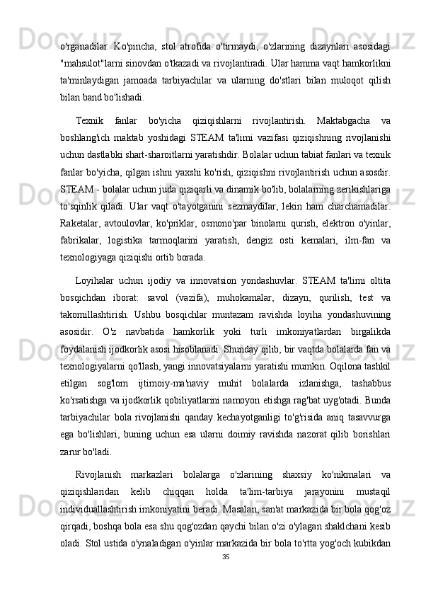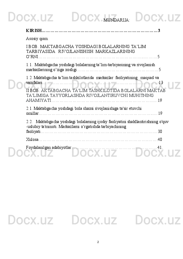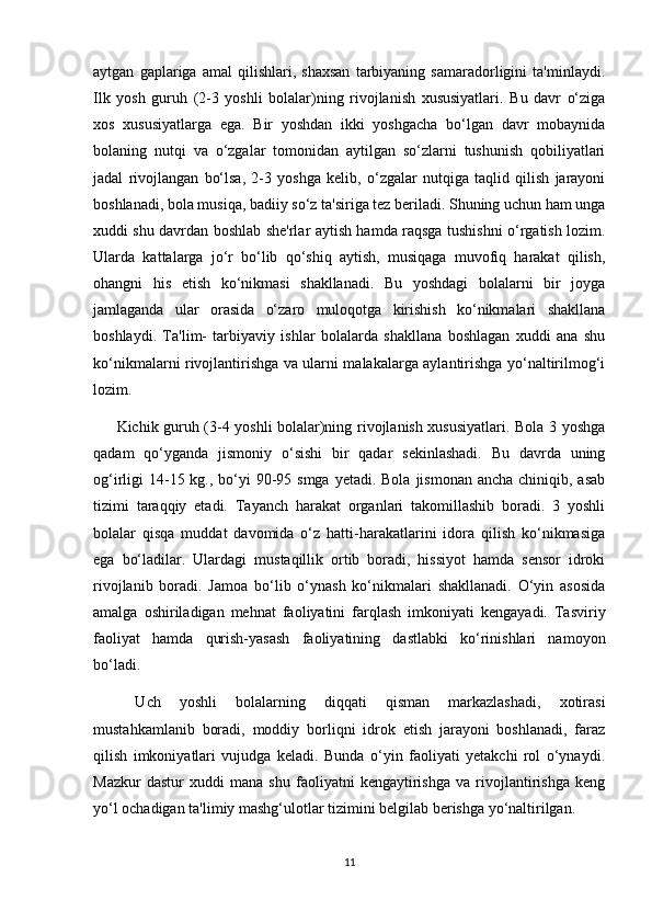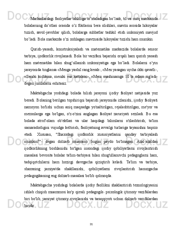 RIVOJLANISH MARKAZLARI VA UMUMIY GURUH BO'LIB TASHKIL ETILADIGAN TA'LIMIY FAOLIYATNING BOG'LIQLIGI