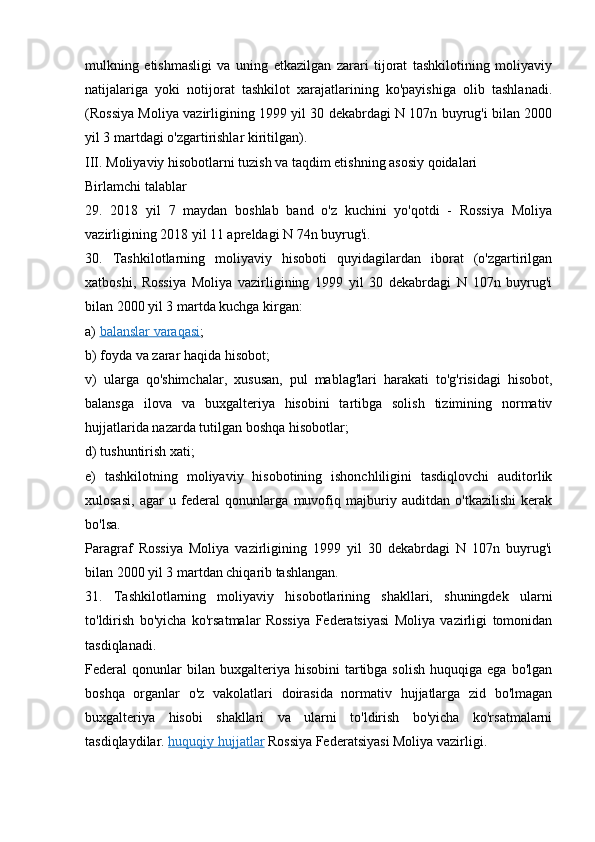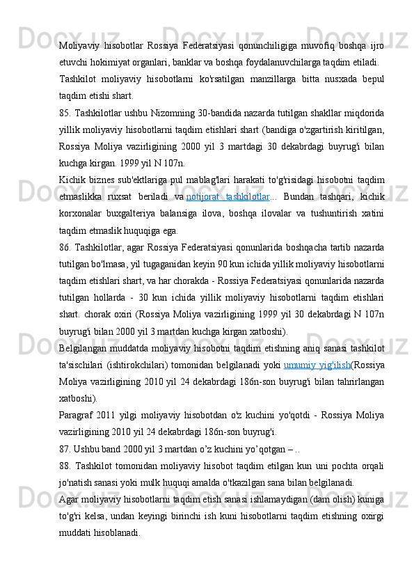 Rossiya Federatsiyasida buxgalteriya hisobi va moliyaviy hisobotni yuritish to'g'risidagi nizom