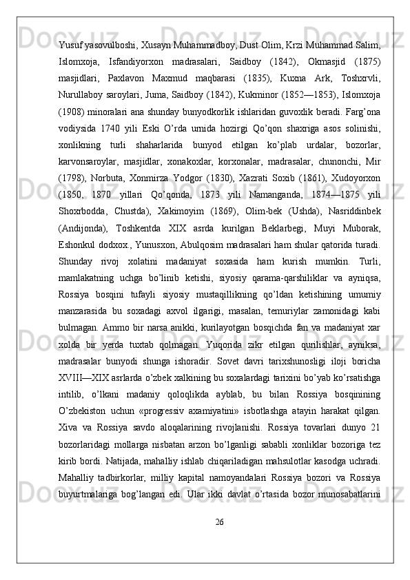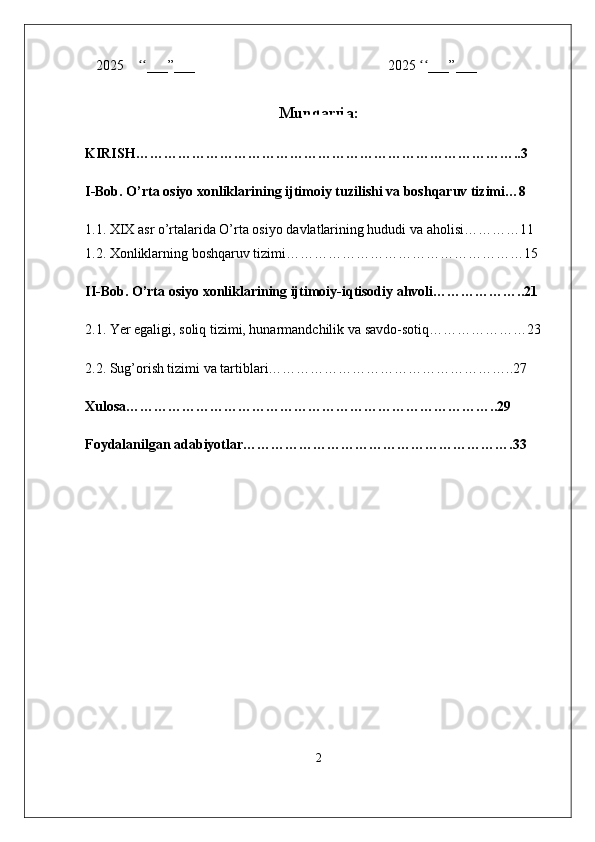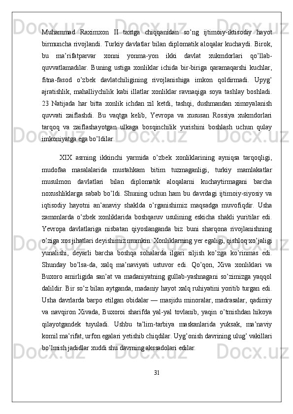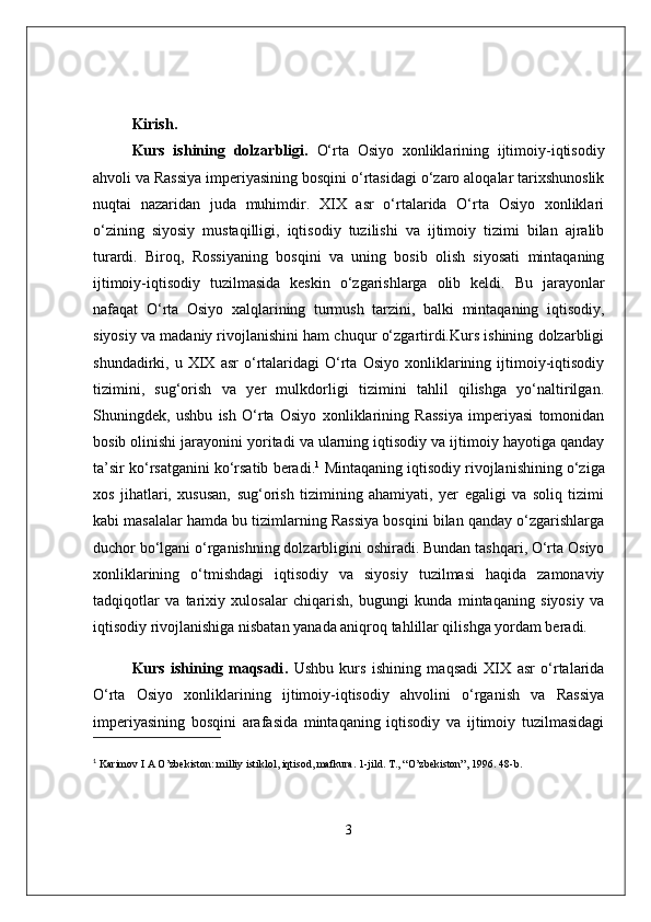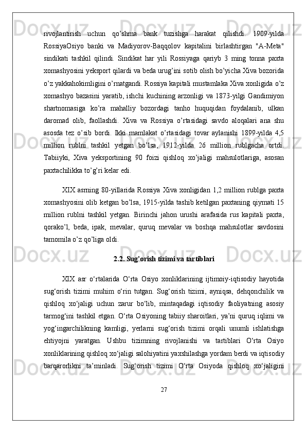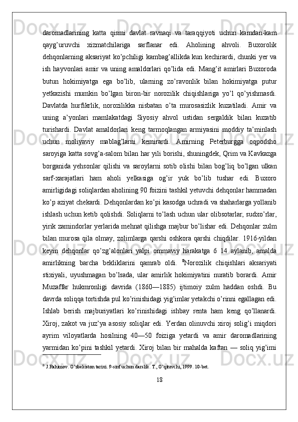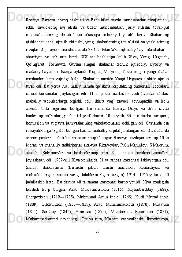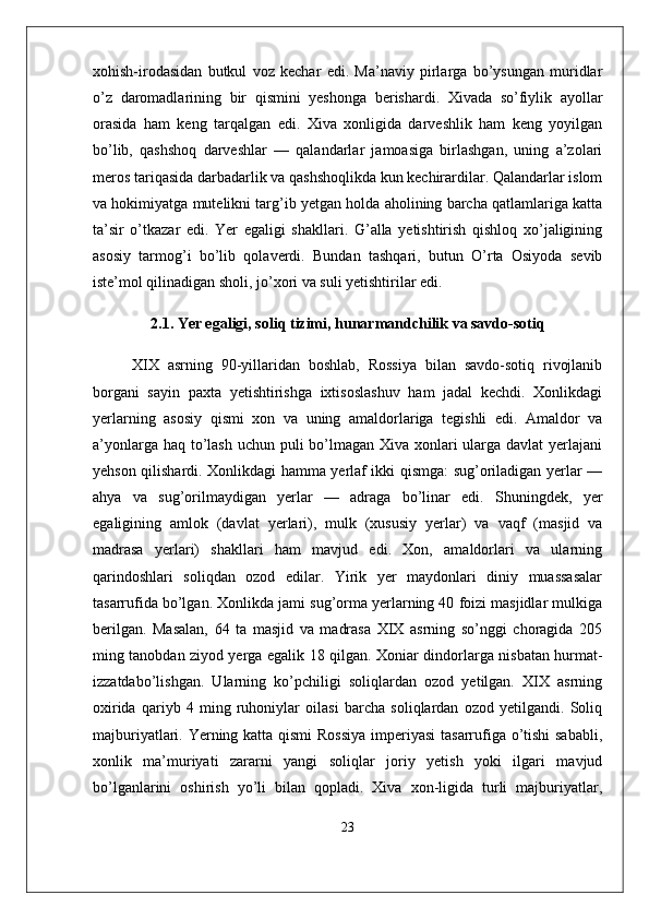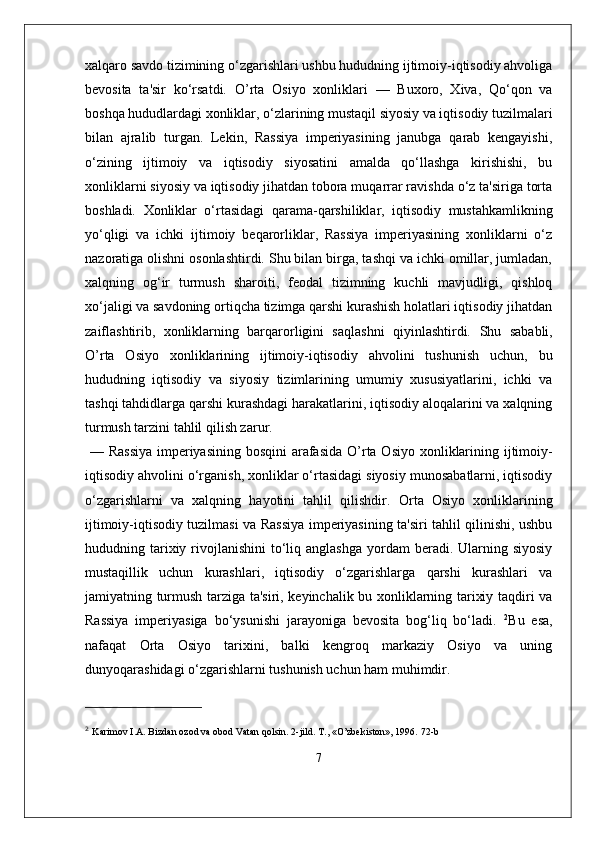 Rossiya imperiyasi bosqini arafasida O'rta Osiyo xonliklarining ijtimoiy-iqtisodiy ahvoli