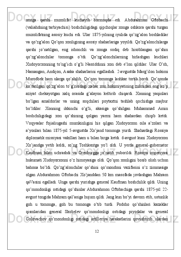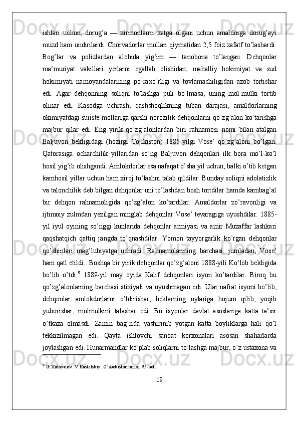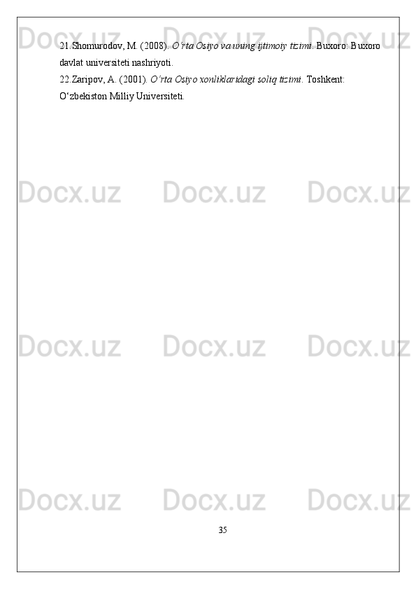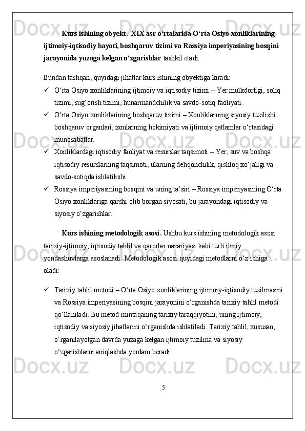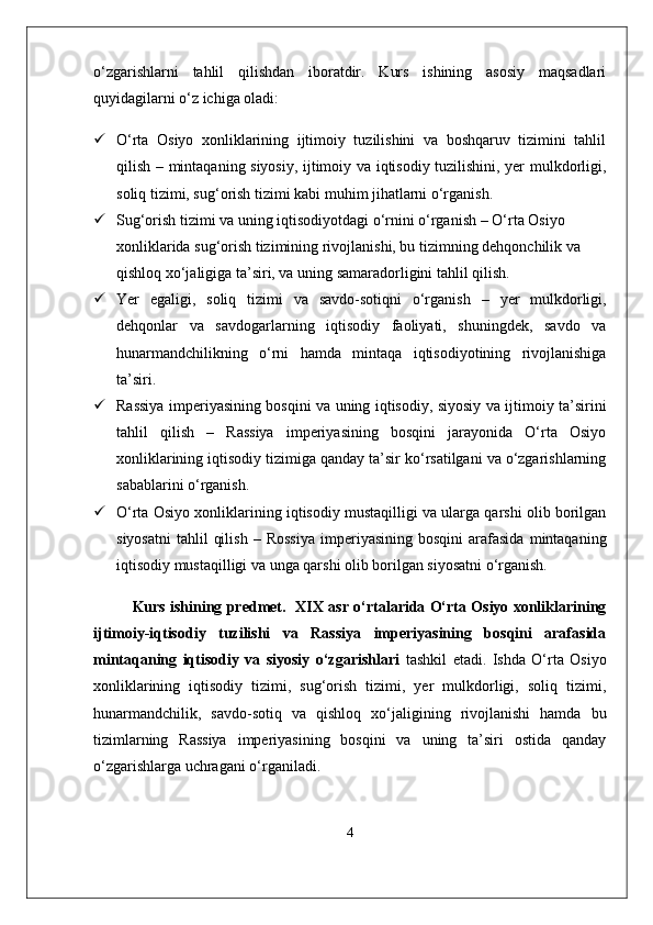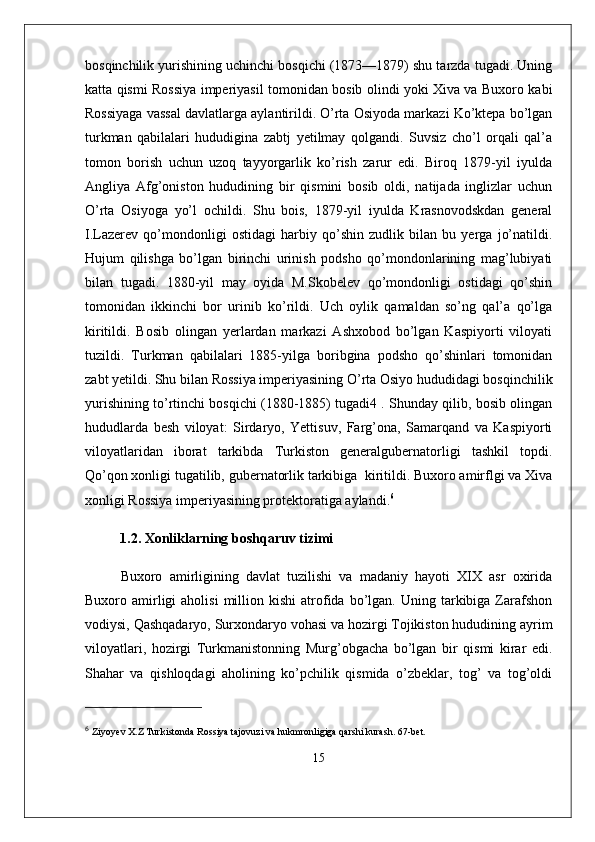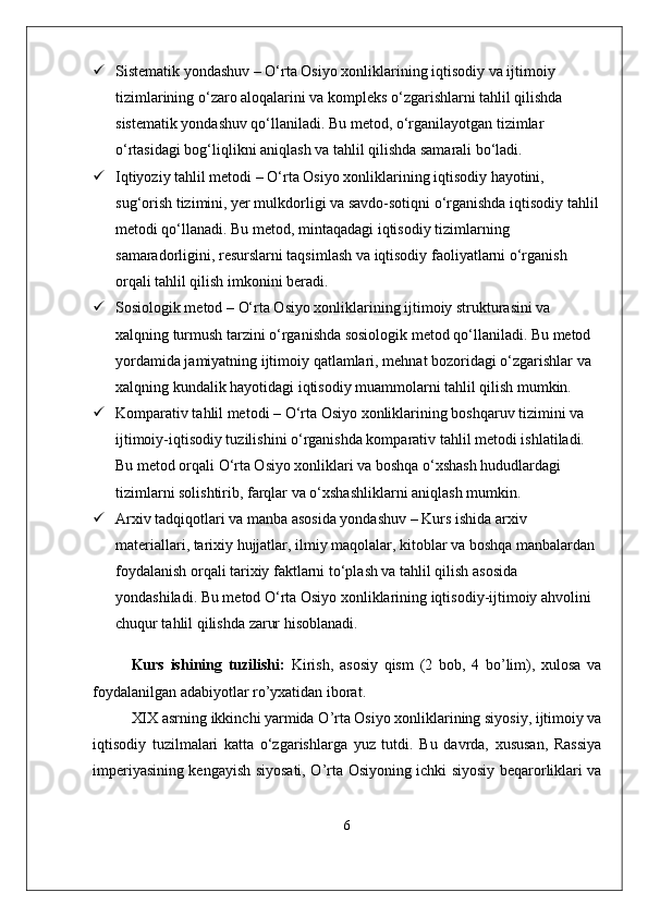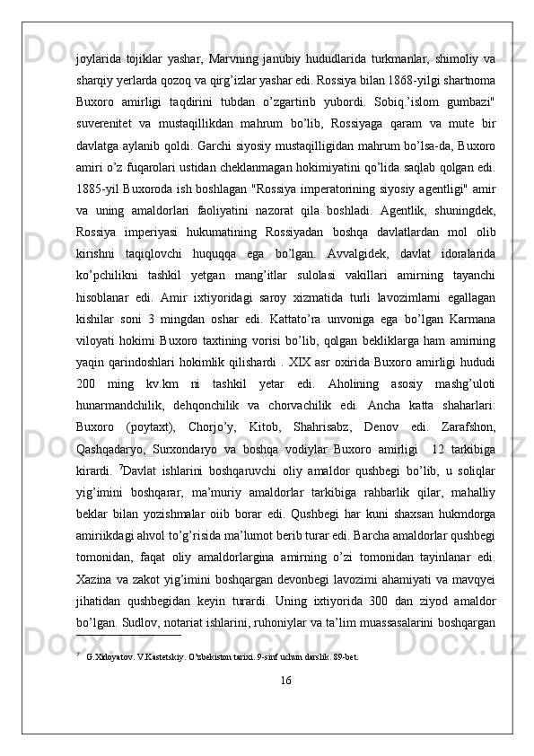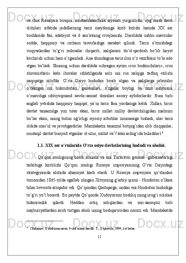 Rossiya imperiyasi bosqini arafasida O'rta Osiyo xonliklarining ijtimoiy-iqtisodiy ahvoli