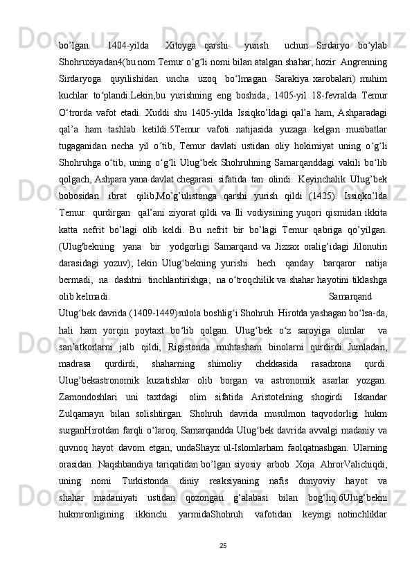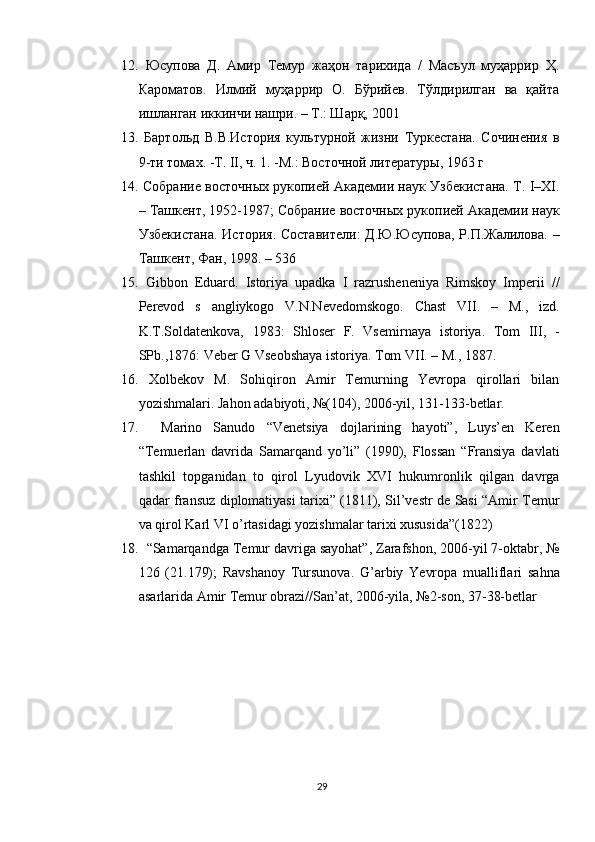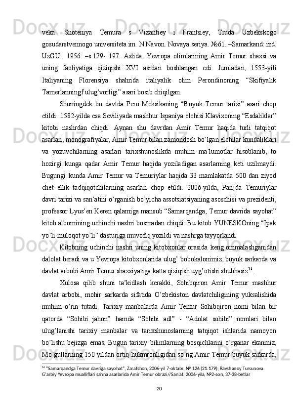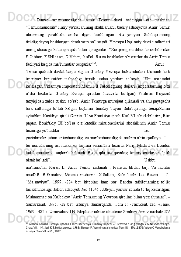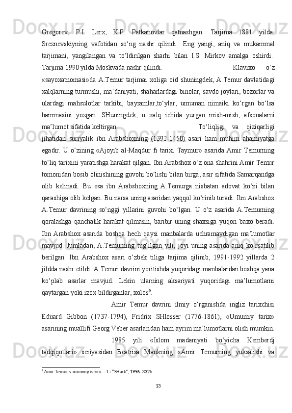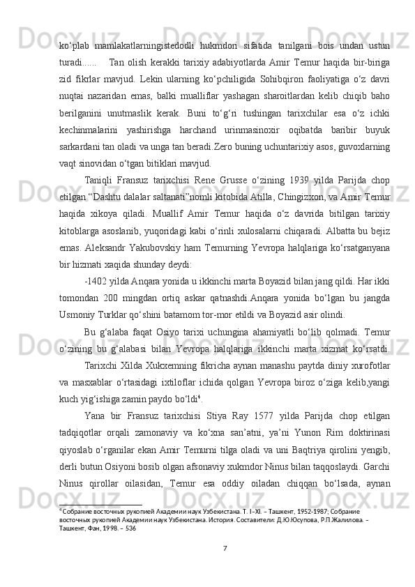 II BOB. AMIR TEMURNING JAHON TARIXSHUNOSLIGI VA MANBASHUNOSLIGIDA TUTGAN O’RNI