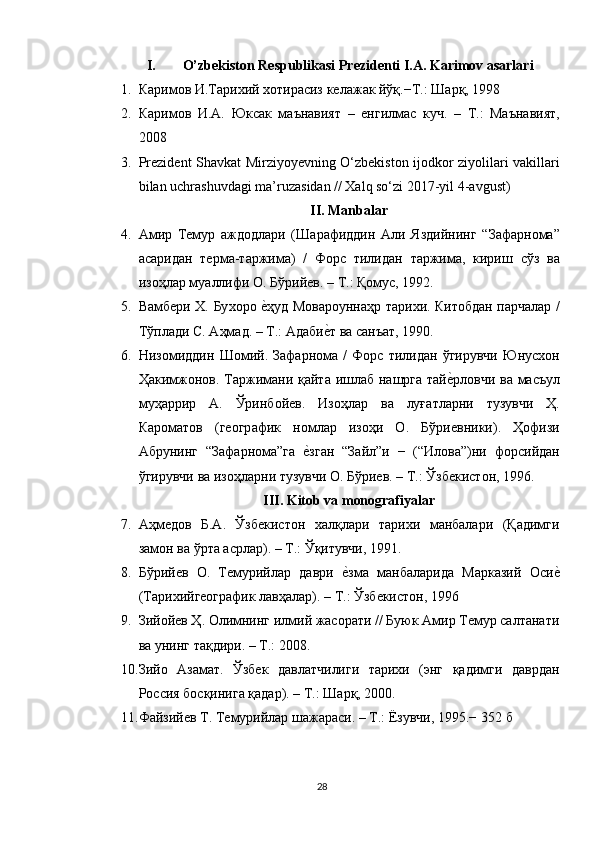FOYDALANILGAN ADABIYOTLAR ………………...………………….. 28-29