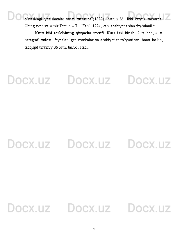 1.1. Rus olimlari asarlarida Temuriylar davri tarixining yoritilishi ...................... 5-10