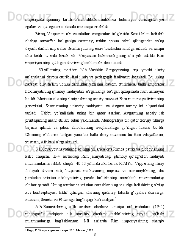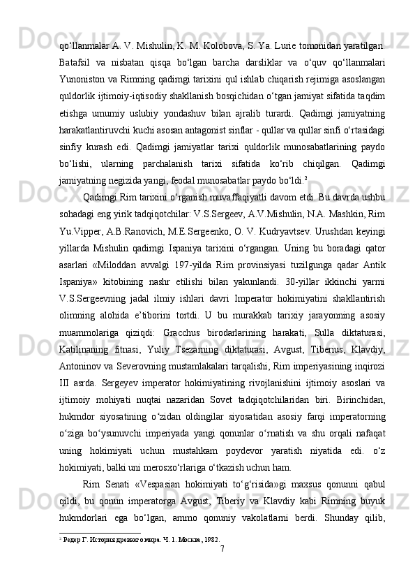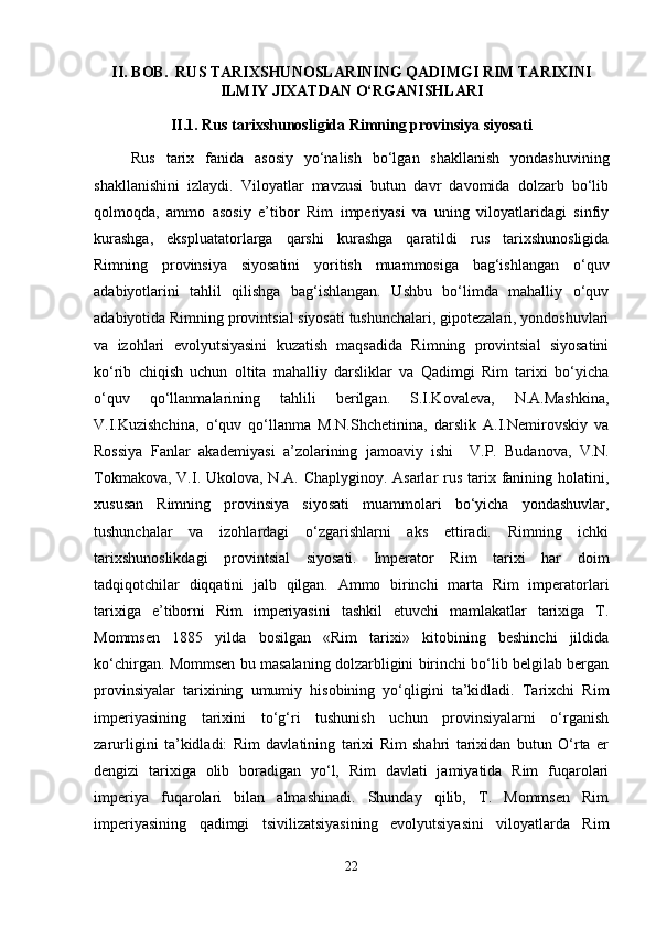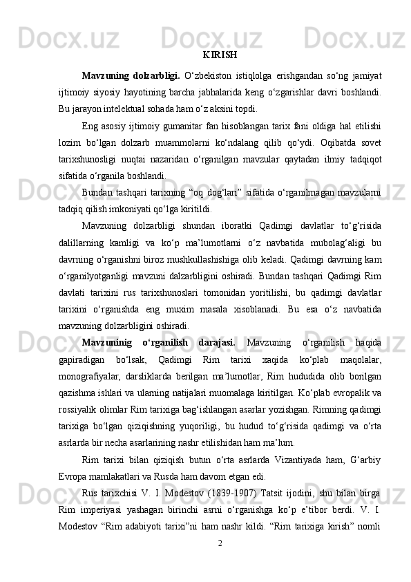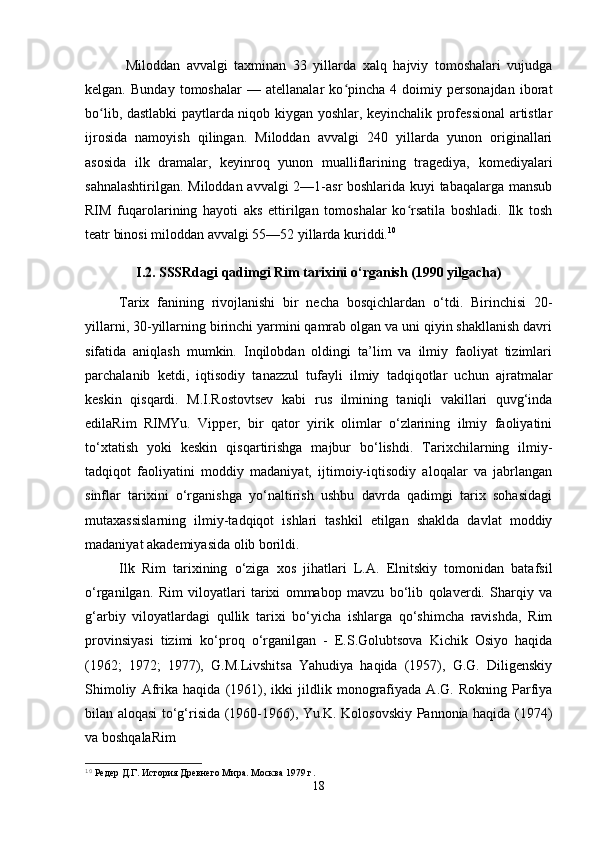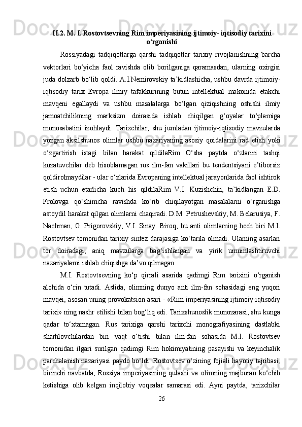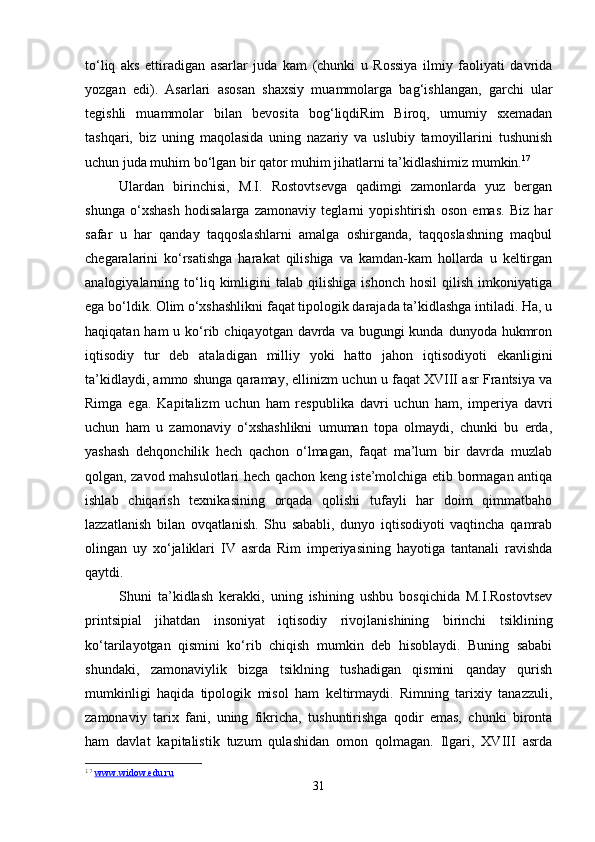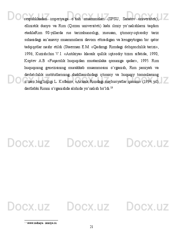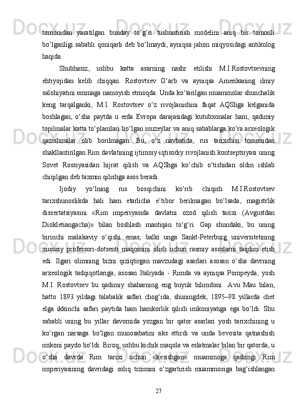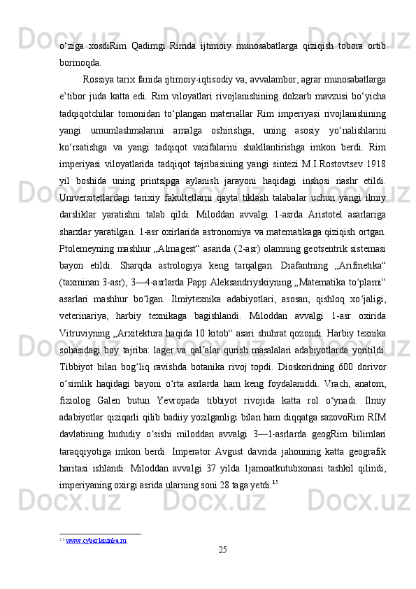 RUS TARIXSHUNOSLIGIDA QADIMGI RIM TARIXINING O‘RGANILISHI