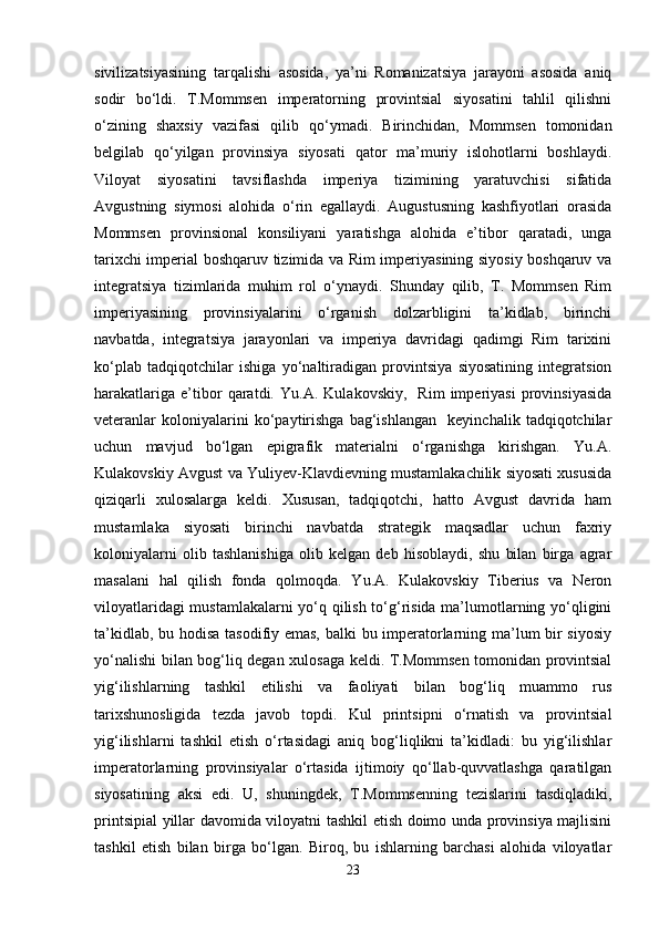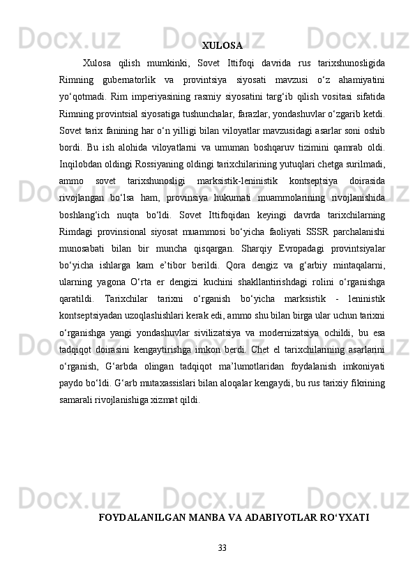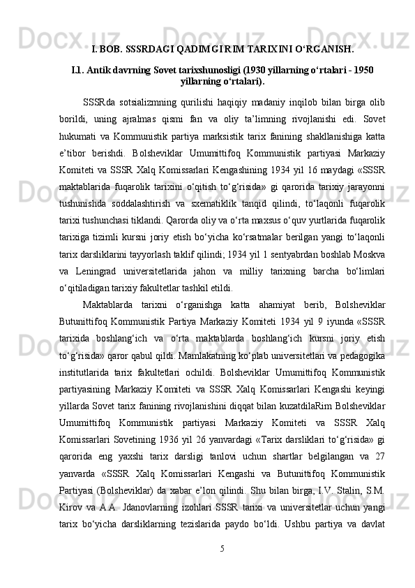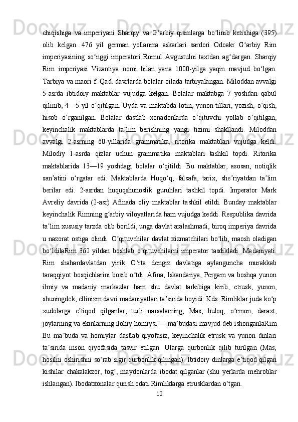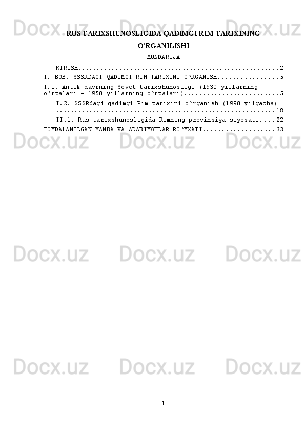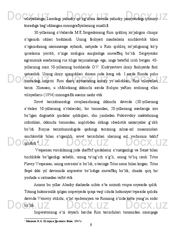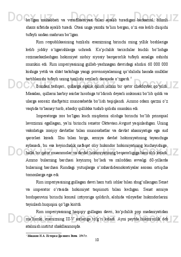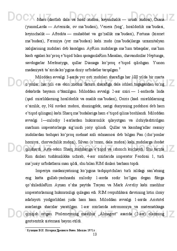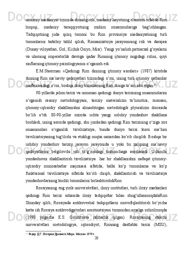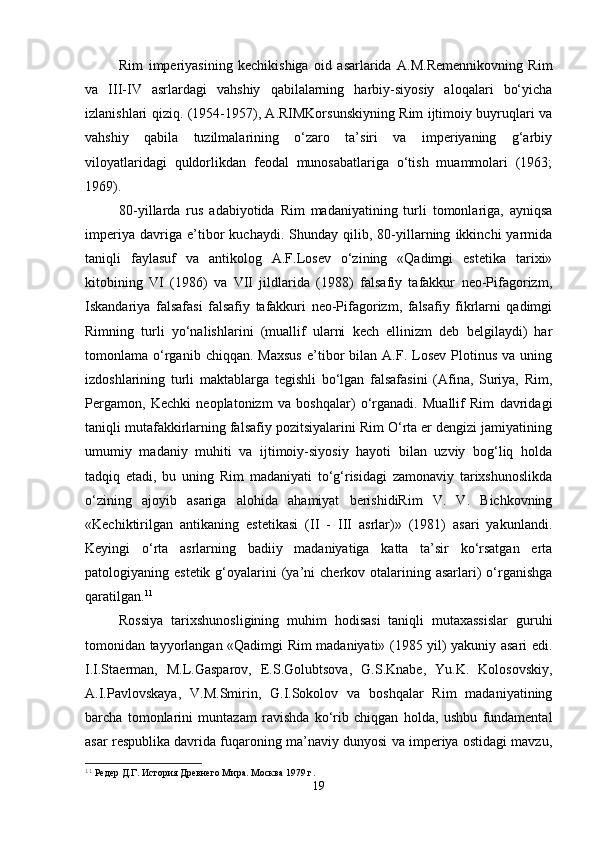 RUS TARIXSHUNOSLIGIDA QADIMGI RIM TARIXINING O‘RGANILISHI