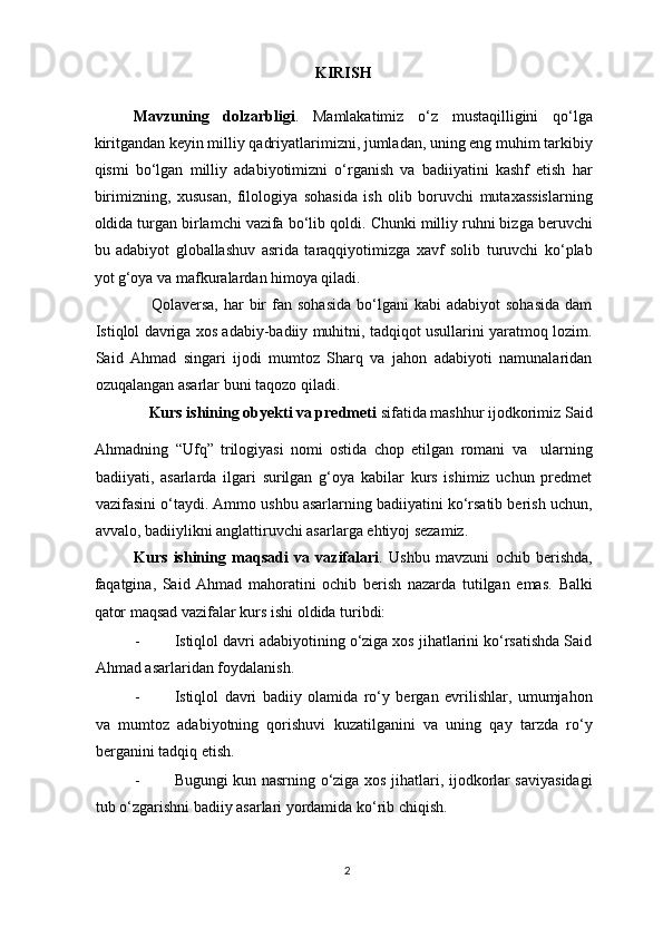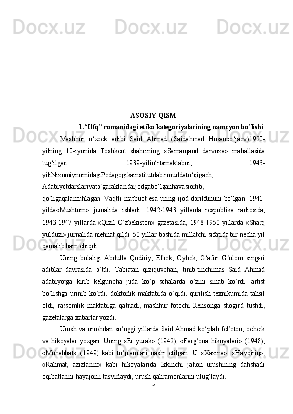 “Said Ahmadning “Ufq”trilogiyasida davr va shaxs talqini”