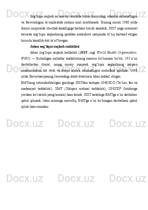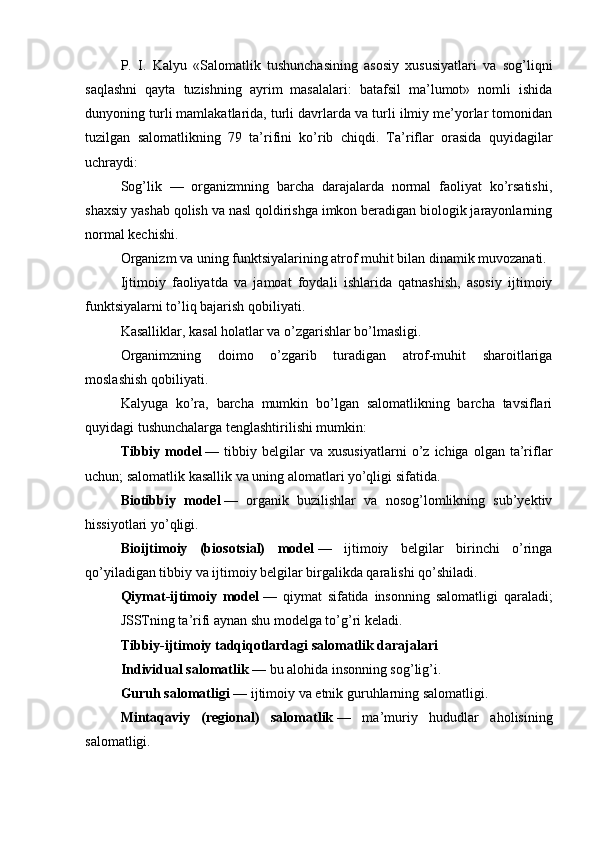 I BOB. SALOMATLIK HAQIDA TUSHUNCHA, DARAJASINI ANIQLASH, MEZONLARI, RITMI