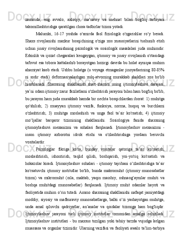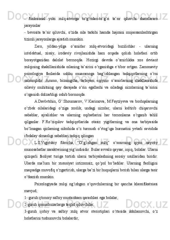 II BOB. XULQ ATVORNING SHAKLLANISHIGA TA’SIR ETUVCHI PSIXOLOGIK OMILLAR