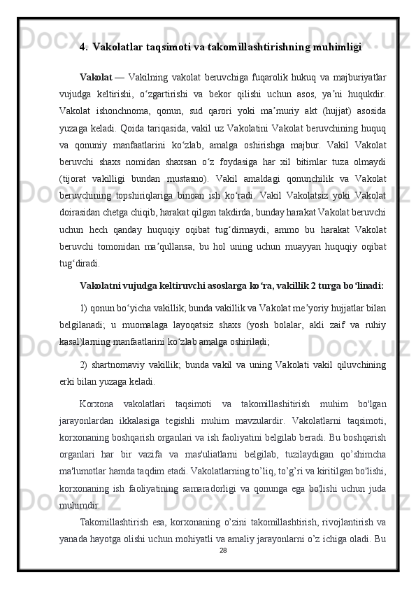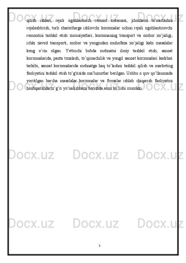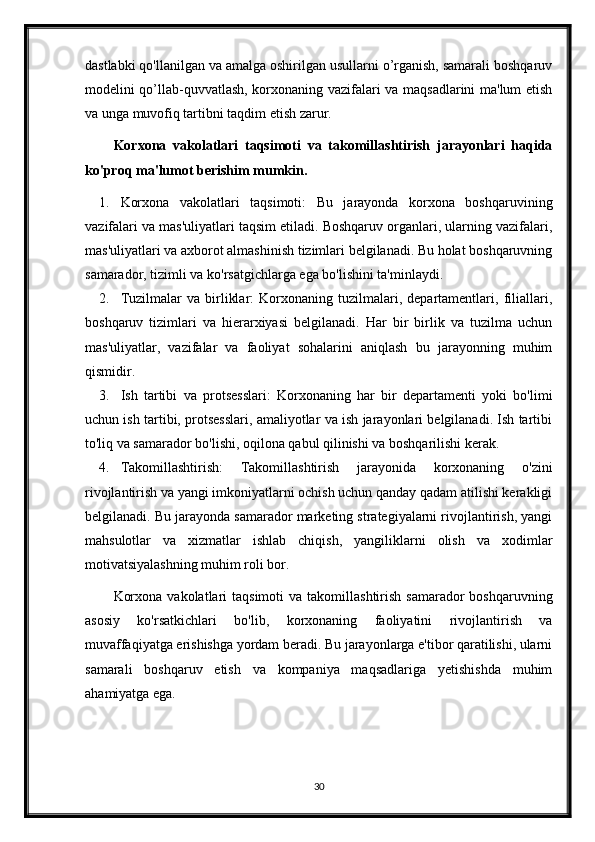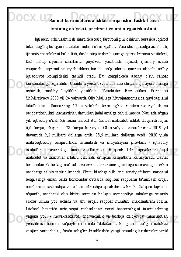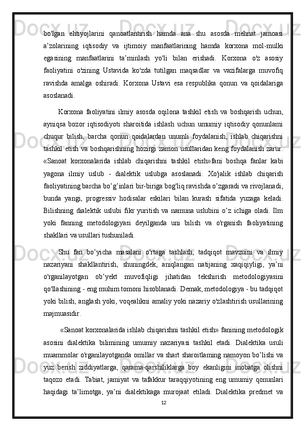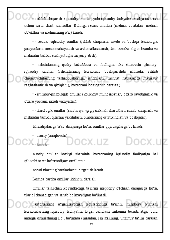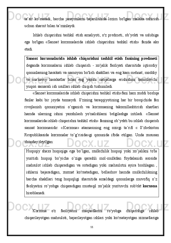 Sanoat korxonalarida vakolatlar taqsimoti va ularni takomillashtirish