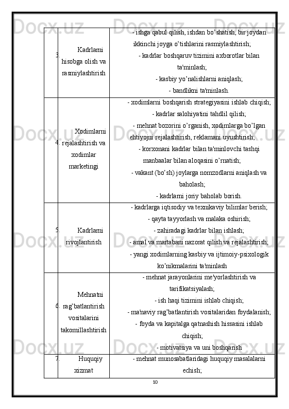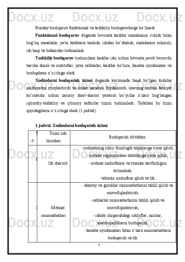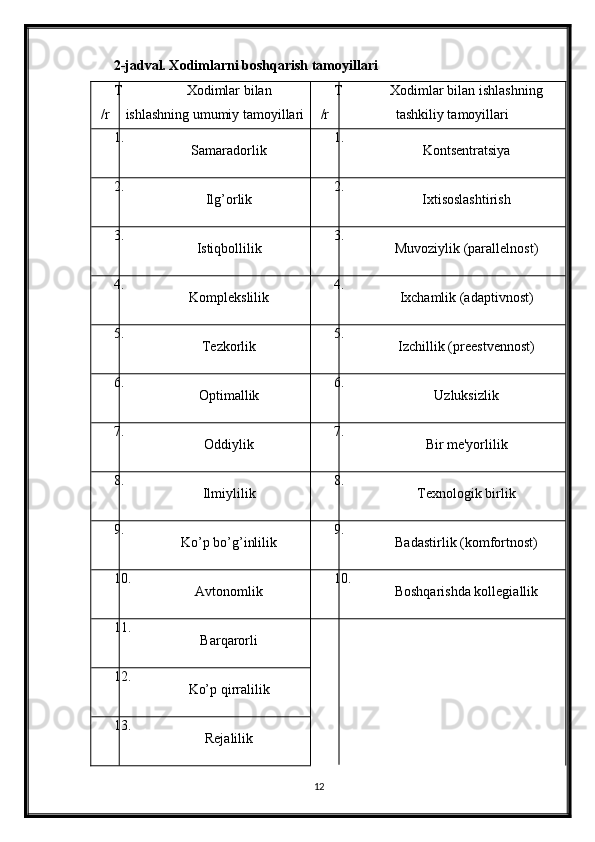10 2 -jadval. Xodimlarni boshqarish tamoyillari
