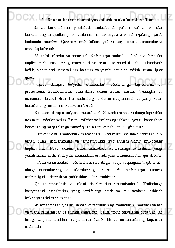Sanoat korxonalarida xodimlardan samarali foydalanish yo'llari