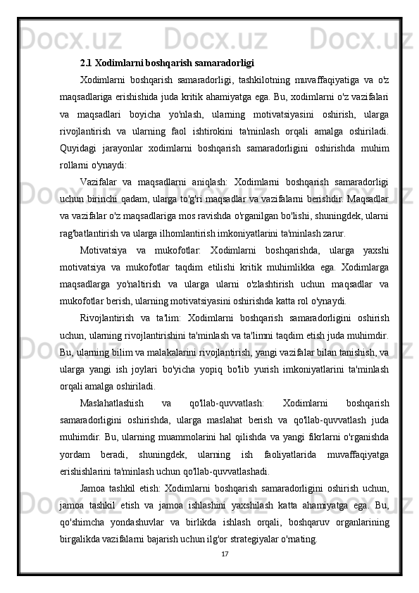 18 2.1  Xodimlarni boshqarish samaradorligi