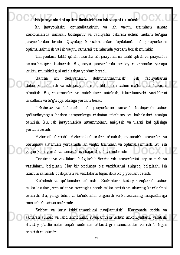 ‘Ish   jarayonini   rivojlantirish’:   Sanoat   korxonalarida   xodimlarni   sanoat