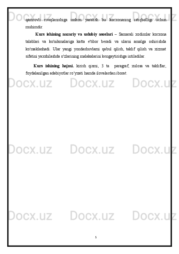 bilan   ishlashga   tayyorlash,   korxonaning   rivojlanishini   ta'minlash   uchun   zarurdir.
